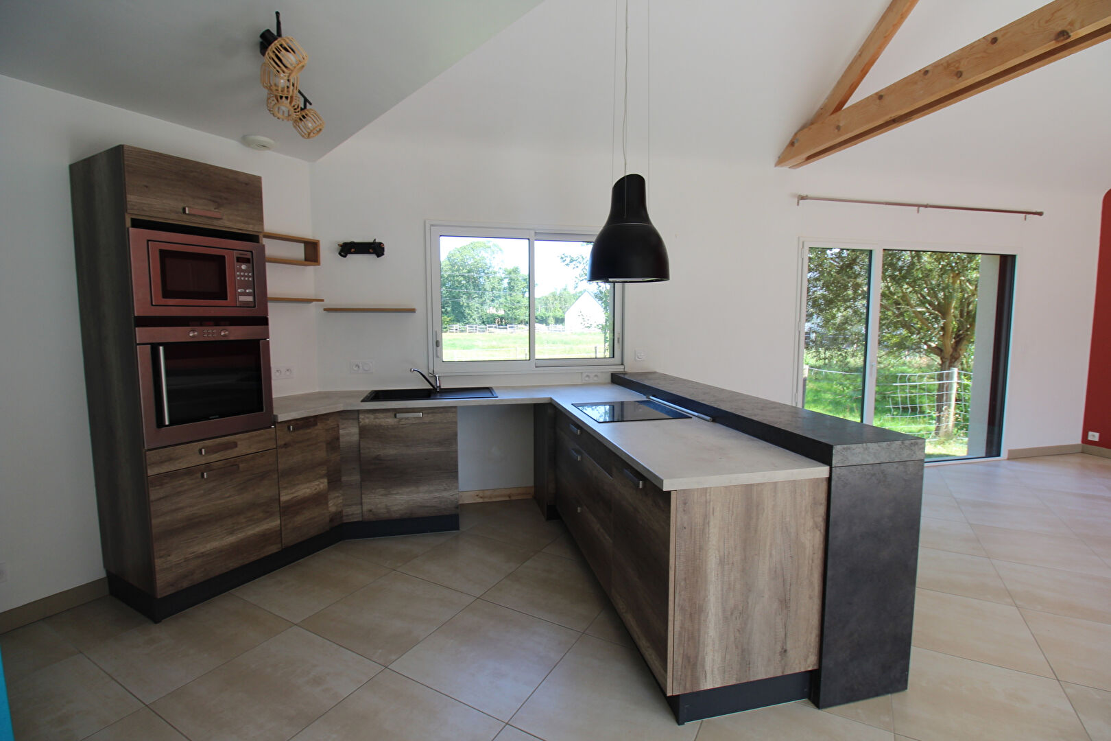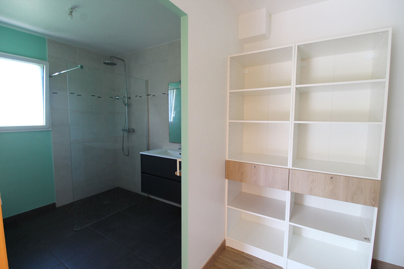 Agence MOUCHON - Venez visiter cette agréable et lumineuse maison construite en 2016 dans un environnement calme et avec un DPE classé A. Vous profiterez d'une vie de plain pied avec sa grand pièce à vivre (61m²) avec plafond cathédral, sa cuisine ouverte aménagée et équipée, sa chambre avec dressing et salle d'eau, son arrière cuisine et son wc séparé. A l'étage 3 chambres, salle de bains et wc séparé. Vous bénéficierez à l'est de la maison d'une vue sur un environnement verdoyant. Un grand abri de jardin complète ce bien.