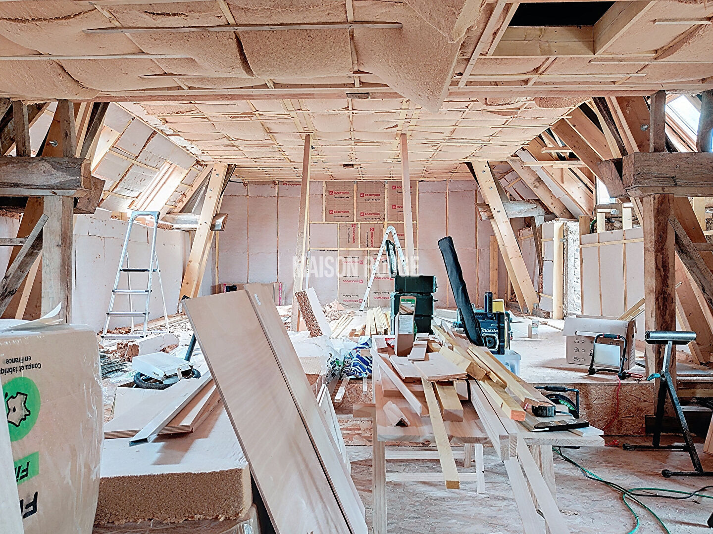 une seconde maison attenante à rénover, avec un beau potentiel de 120 m². Les attentes sont en place, le plancher et l'escalier sont neufs.