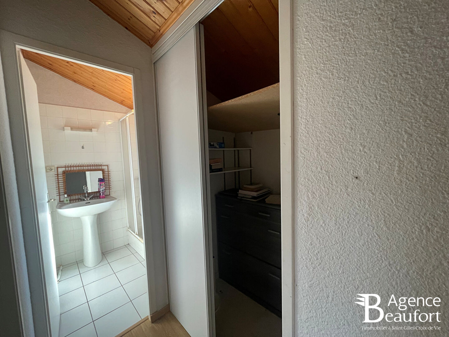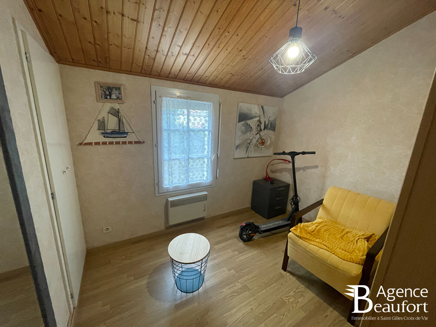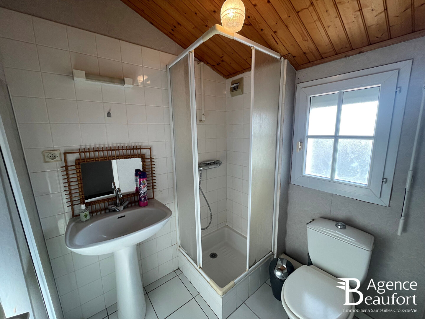 Exclusivité - Centre-Croix de Vie, maison de type 2 de 38 m² habitables comprenant : séjour-salon, cuisine aménagée et équipée, une chambre, salle d'eau avec wc, wc séparé, cour.