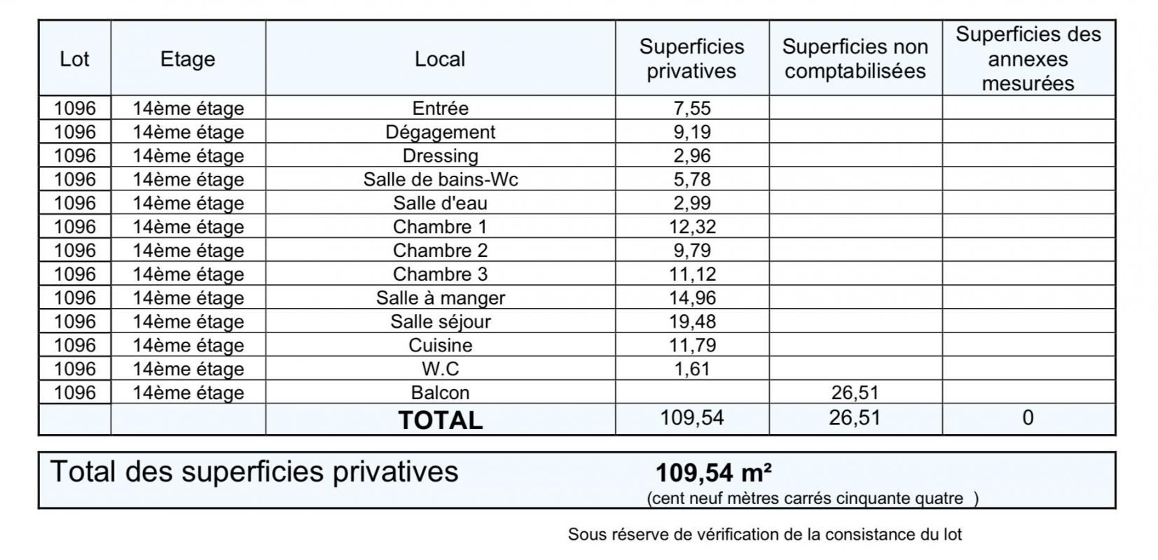 (Superficie des différentes pièces jointe aux photos d'annonce).