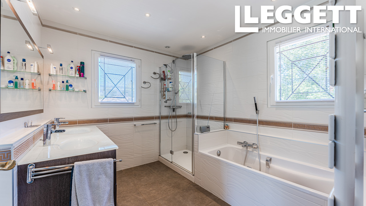 A39368EPR33 - Dans un environnement calme et verdoyant, au coeur du Golf de Gujan-Mestras, élégante villa de 183 m² avec accès direct au parcours. Grand séjour lumineux, cuisine indépendante, 4 chambres dont une suite avec balcon. Jardin paysager de 1100 m², piscine chauffée, double garage. Prestations haut de gamme. Bien rare dans un cadre exceptionnel.