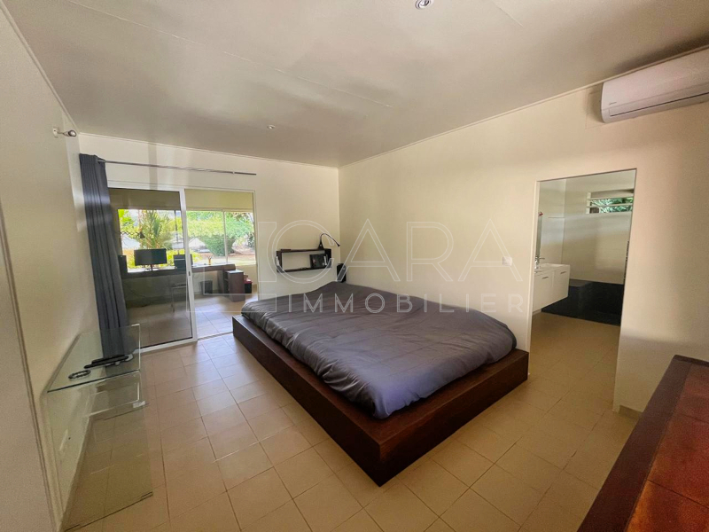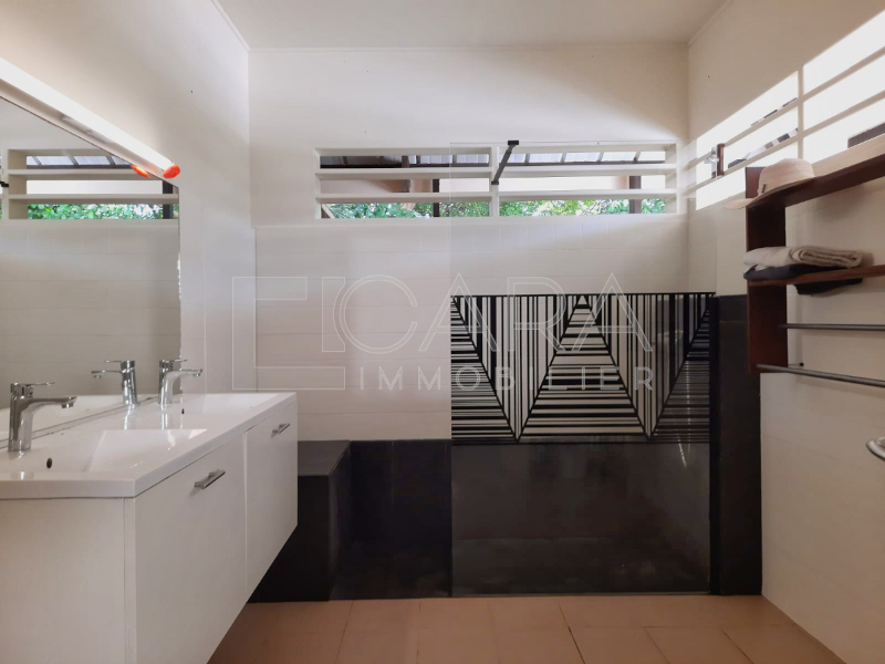 - Une villa de type T5 d'une surface habitable d'environ 170 m² comprenant un salon-salle à manger, une cuisine américaine aménagée, une buanderie, trois chambres climatisées, un bureau, deux salles d'eau, deux WC et une terrasse