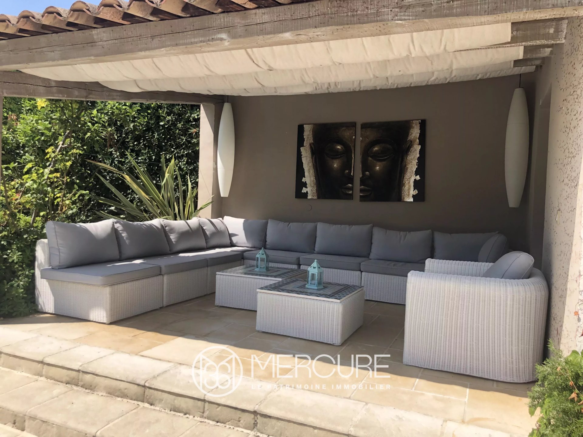 Implantée sur un superbe jardin arboré d’environ 1 570 m², agrémenté d'agrumes, de palmiers, d'une piscine accueillante, d’une maison d’amis climatisée avec chambre et salle de douche/wc, terrasse couverte et ombragées ainsi qu'un élégant kiosque en fer forgé au près de sa piscine, elle offre un cadre de vie paisible et raffiné.