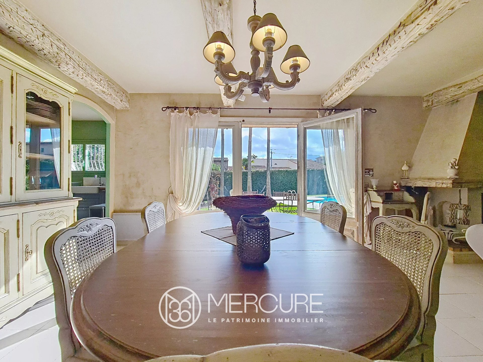 Dès l’entrée, un vaste hall distribue les espaces de vie et la suite parentale. Le salon avec cheminée promet de chaleureux moments en hiver, tandis que la salle à manger s’ouvre sur l’extérieur. La cuisine, entièrement équipée, complète ce bel espace convivial.