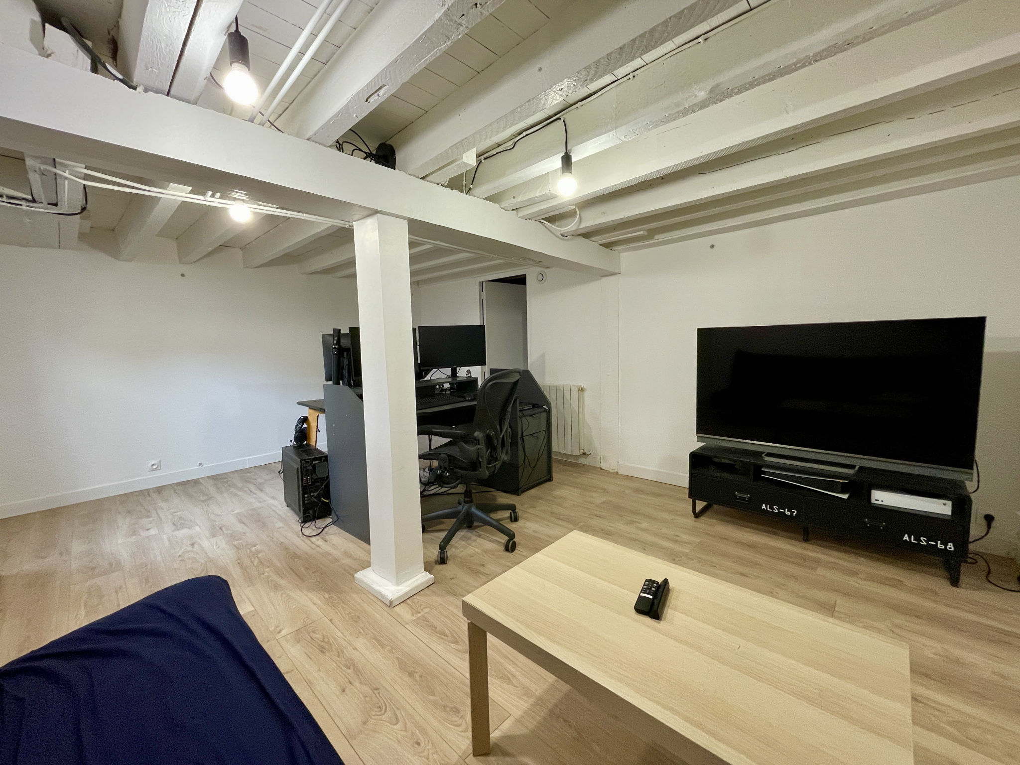 Un souplex sain et aménagé vous offre 21 m2 supplémentaires, idéal pour y installer un salon télé, un bureau, ou une chambre en fonction de vos besoins. Une partie cave a été conservée pour optimiser les espaces de rangement.