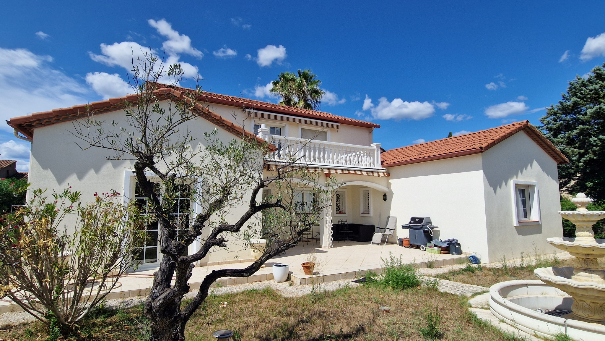 A vendre sur GIGNAC - Nichée au fond d'une impasse dans un environnement très calme et sans vis-à-vis, superbe villa de plus de 180m2 habitables avec grande terrasse semi-couverte exposée sud + un grand garage attenant de 40m2 édifiée sur une jolie parcelle paysagée de 800m2 avec arrosage automatique et branchement à l'eau du canal