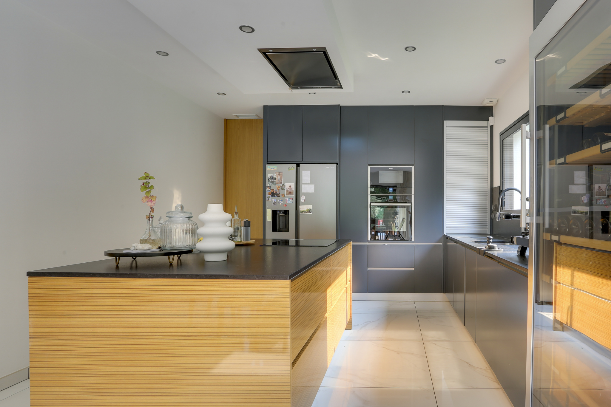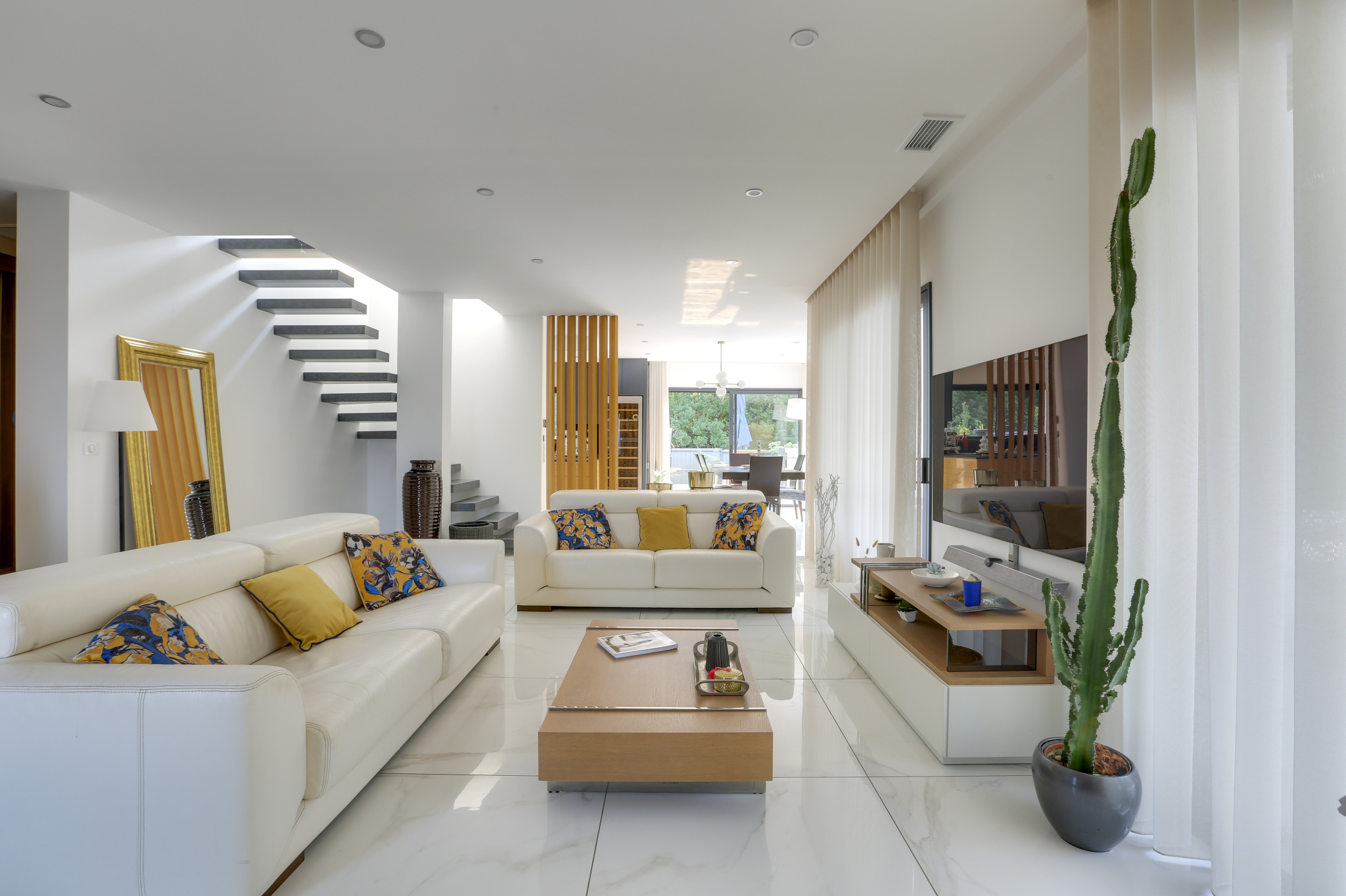 Les prestations de qualité incluent chauffage au sol et climatisation gainable réversible par pompe à chaleur, panneaux solaires et matériaux de construction haut de gamme.