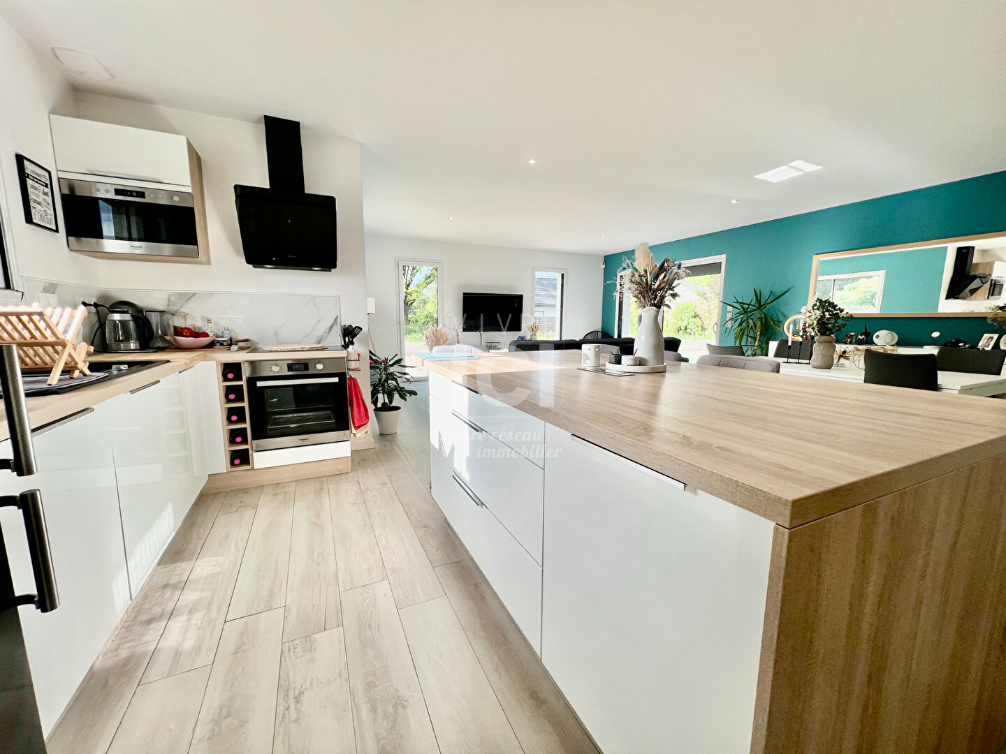Dès l'entrée, vous serez séduit par la pièce de vie lumineuse d'environ 50 m², avec de larges ouvertures sur la terrasse et la piscine. La cuisine, ouverte et parfaitement équipée, s'organise autour d'un îlot central convivial.