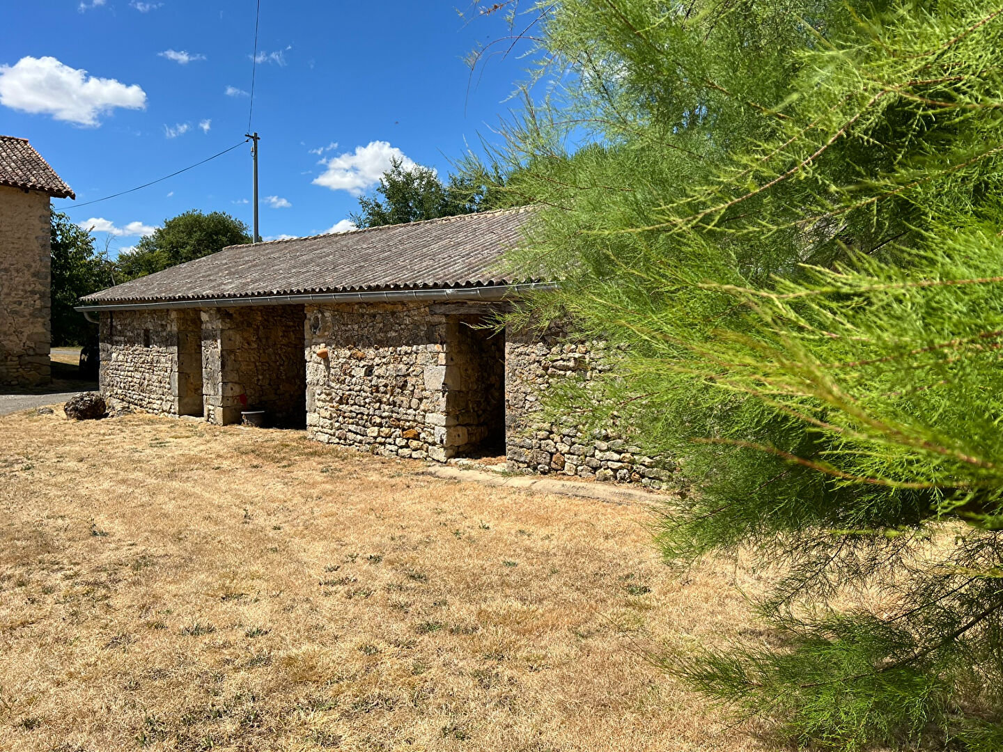 Une grande cour permet un accès facile à tous les batiments et un stationnement de plusieurs véhicules.