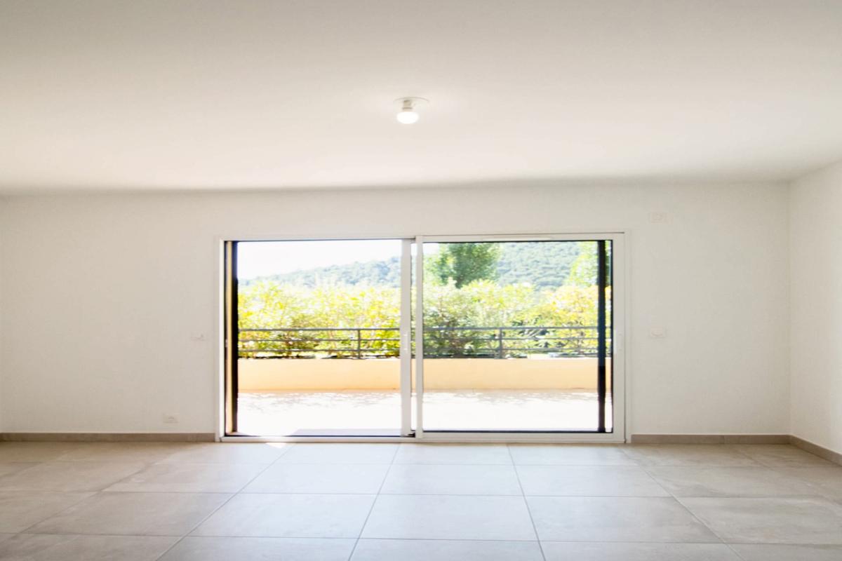 Terrasse de 16 m² sans vis-à-vis, donnant sur les espaces verts de la copropriété, vue dégagée sur collines, mer et village. Salon avec cuisine ouverte à aménager, chambre au calme, salle d'eau moderne avec douche à l'italienne et WC. Exposition sud-ouest, lumineux toute la journée. Un garage privatif en sous-sol agrémente ce bien.