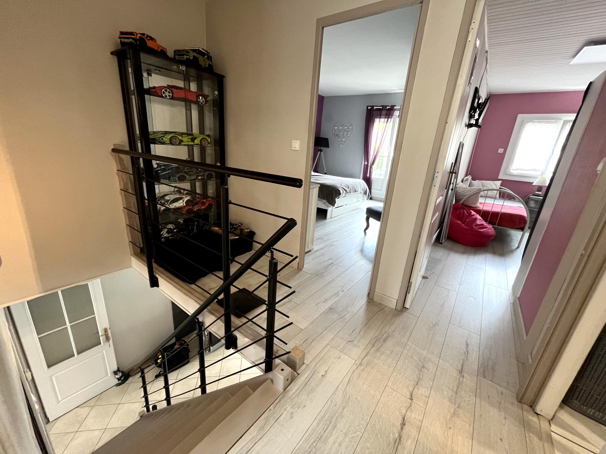 A l'étage, un palier dessert 3 chambres aux superficies généreuses, une chambre d'enfant ou bureau, une salle d'eau avec WC.