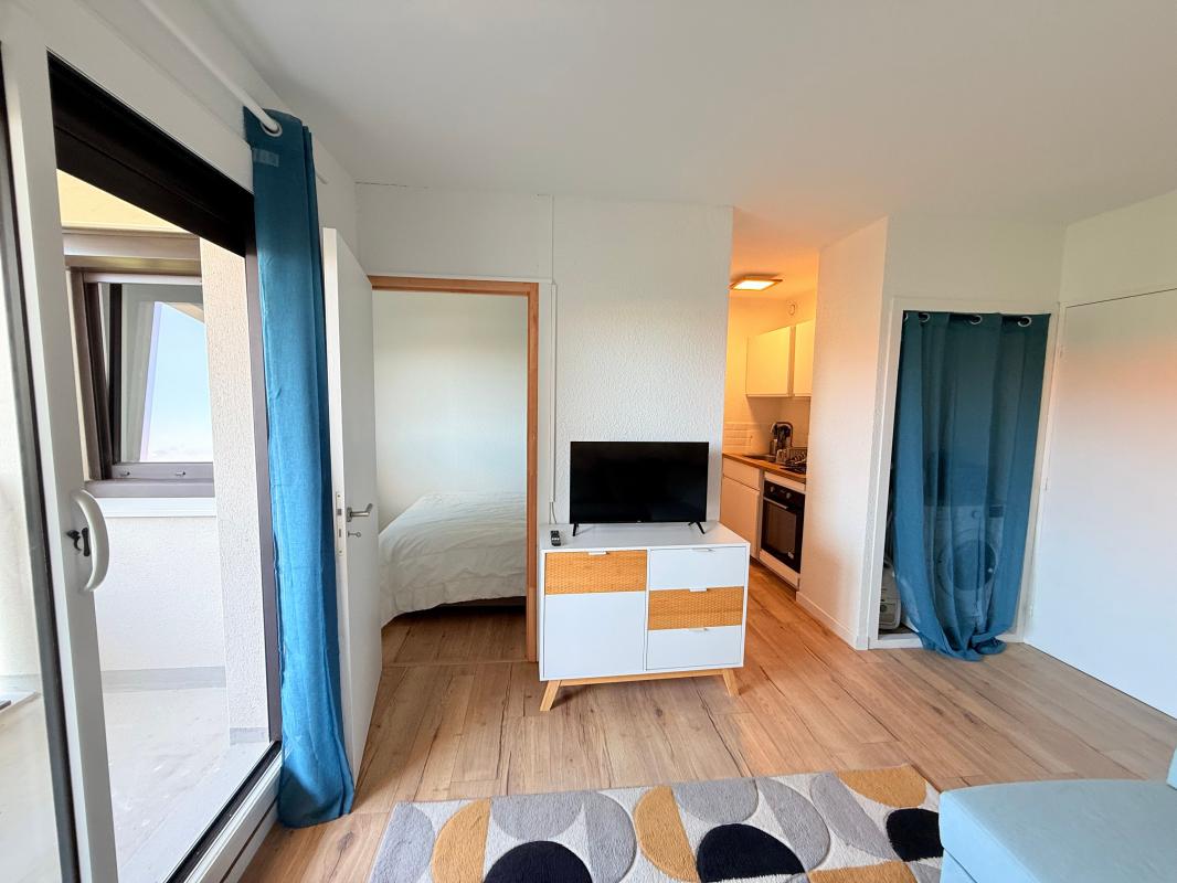 - D'un séjour salon avec coin cuisine et alcôve transformable facilement en deuxième coin nuit