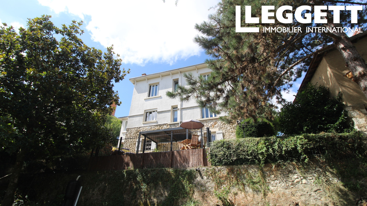 A39162AF86 - Maison d'habitation comprenant au RDC: entrée (8m2), cuisine aménagée (10m2), salon/salle à manger (32m2), séjour-salon (14m2), wc et buanderie. 1er étage: palier, quatre chambres (18m2, 12m2,12m2 et 10m2) don't une avec salle d'eau attenante et salle de bains. Sous-sol: chaufferie, atelier et deux pièces. A l'extérieur: garage, terrasse et jardin clos.