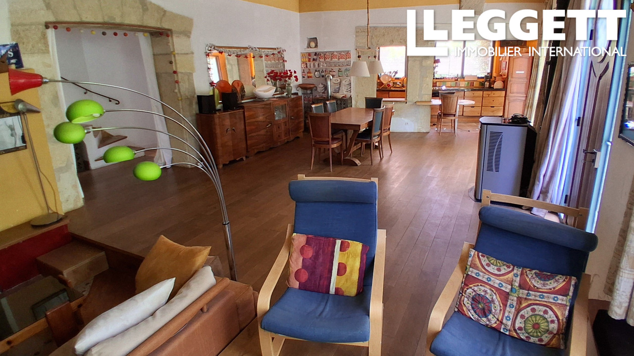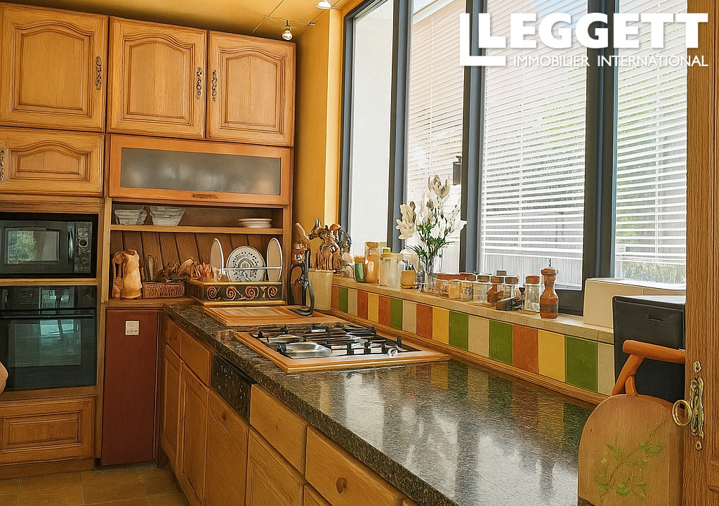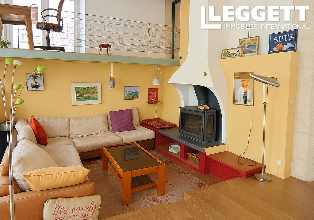 La maison principale propose une cuisine équipée semi-ouverte sur l'espace de vie ; ainsi qu'un vaste salon doté d'une cheminée et d'un poêle