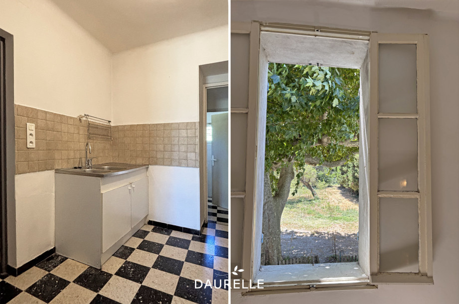 Votre agence DAURELLE Immobilier vous présente 'Kontiki', un mas mitoyen de 106m2 habitables implanté en pleine campagne de Cabannes sur un terrain arboré de 3083m2.