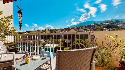 Traversant, Il se compose d'une pièce de vie de 20 m2 donnant sur un agréable balcon abritée de 9 m² avec vue dégagée sur le Revard, Une cuisine séparée et son grand cellier. La partie nuit comprend 2 chambres avec rangements, une salle d'eau avec WC intégré.