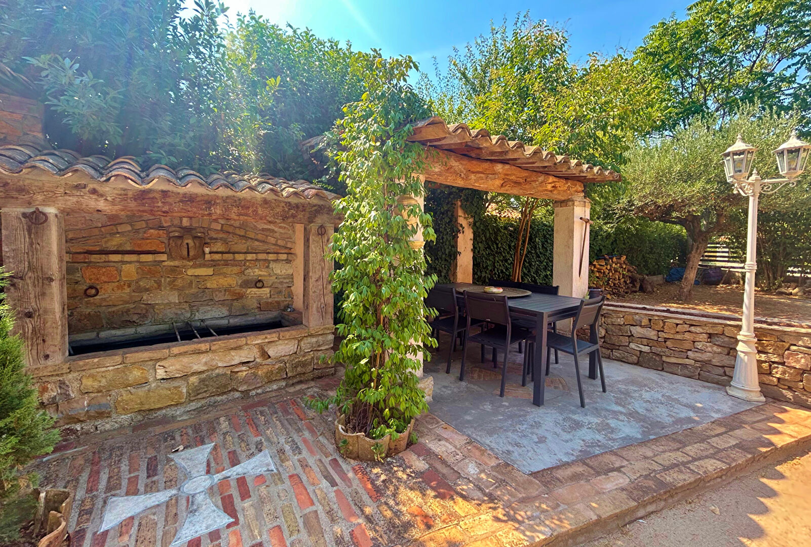 À l'extérieur, le terrain séduit par ses différents aménagements : une agréable terrasse pour profiter des beaux jours, une cuisine d'été parfaitement intégrée pour recevoir famille et amis, ainsi qu'un charmant bassin en pierres sèches qui apporte une touche d'authenticité et de caractère.
