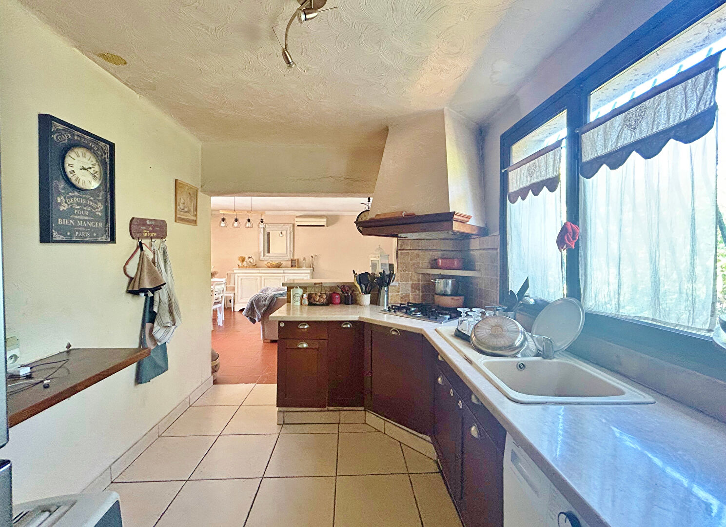 Édifiée sur une parcelle plate et arborée de plus de 600 m², cette construction traditionnelle développe environ 90 m² habitables. Elle se compose d'un séjour lumineux ouvrant sur une terrasse bien exposée, de trois chambres, ainsi que d'une pièce indépendante pouvant être aménagée en cuisine d'été, bureau ou espace polyvalent selon vos besoins.