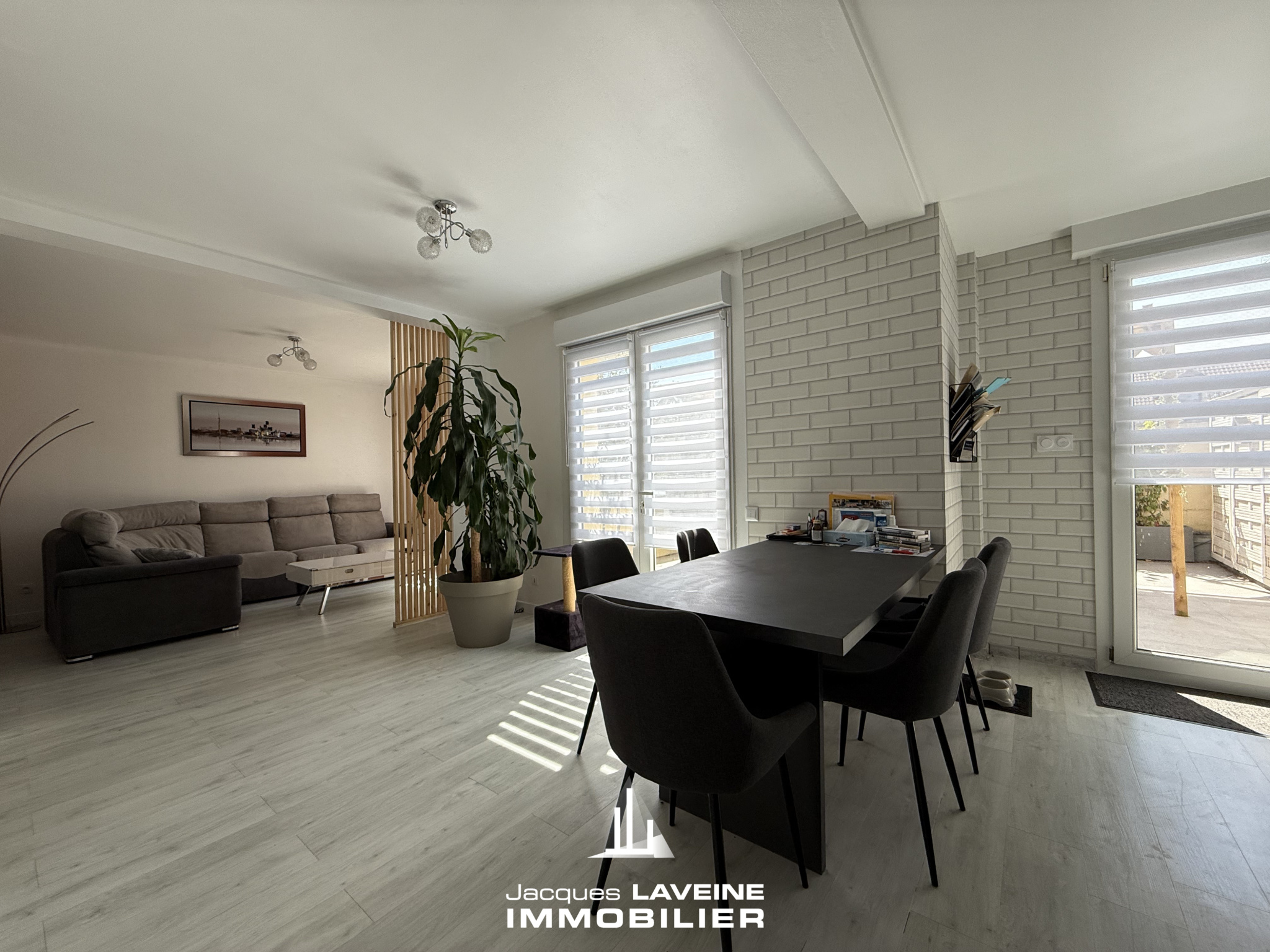 EXCLUSIVITÉ JLI! Située dans le charmant village de FEY, au calme, cette lumineuse et accueillante maison se compose d'une entrée, d'un salon-séjour avec cheminée insert ouvert sur une vaste cuisine équipée avec accés direct sur terrasse intime, un cellier, une salle d'eau, Wc et lingerie. A l'étage, un dégagement, trois chambres dont une avec dressing, une salle de bains et wc indépendants. Accès par portail et large allée pavée permettant de garer plusieurs véhicules, une dépendance parfaitement habitable de 18m2 qui peut faire office de bureau ou tout autre affectation confortable. Garage fermé avec porte motorisée, très joli terrain clos et arboré de 600m2.