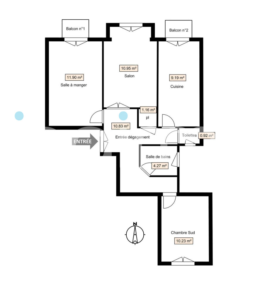 Découvrez ce trois pièces traversant avec ses deux balcons :
