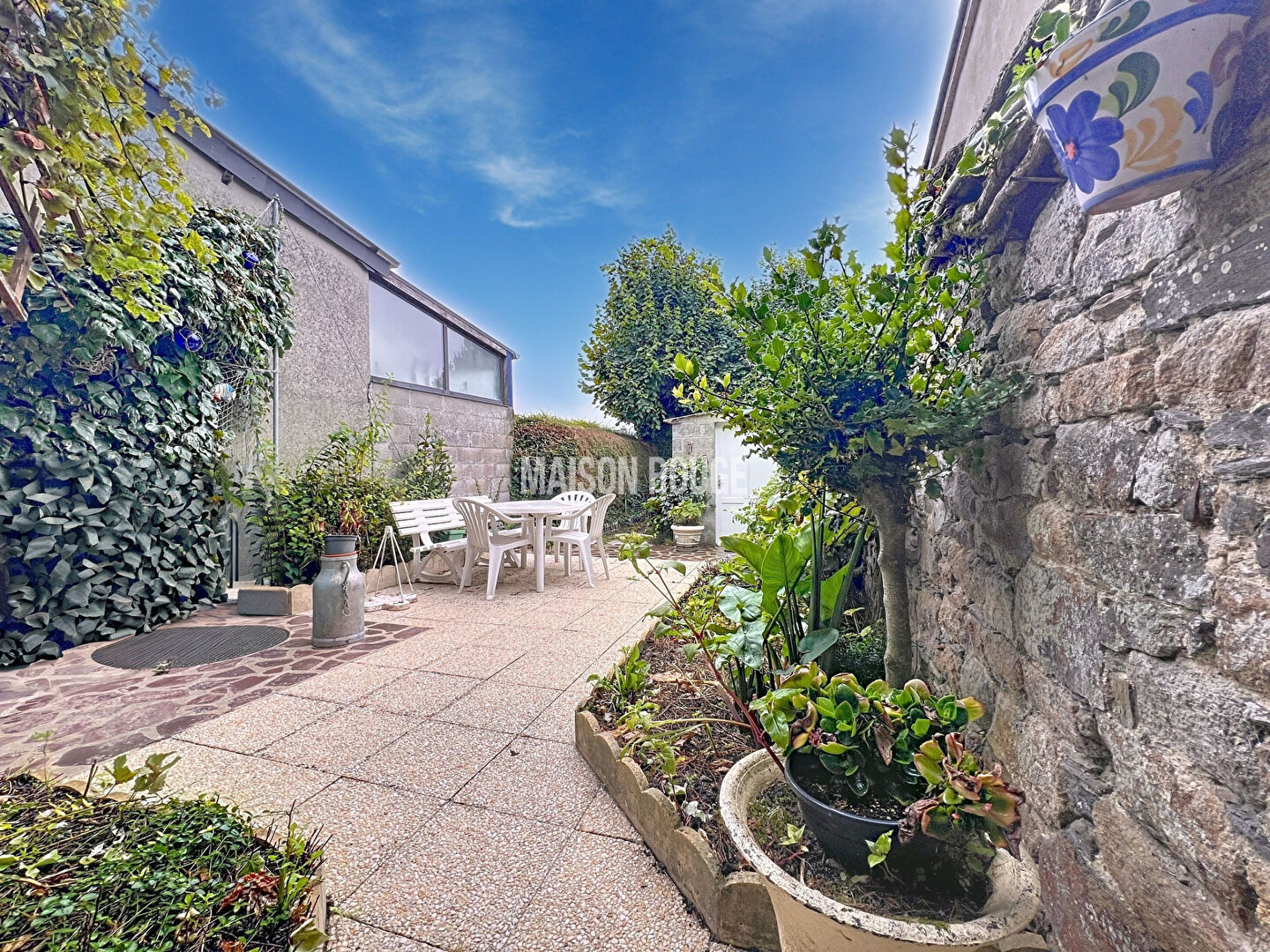 À l'étage, une grande chambre bénéficie de volumes confortables et d'une belle hauteur sous plafond, complétée par une salle d'eau. L'extérieur constitue un véritable atout pour le secteur, avec un grand jardin clos, idéal pour profiter des beaux jours, et qui dispose également d'un abri offrant des possibilités de rangement.