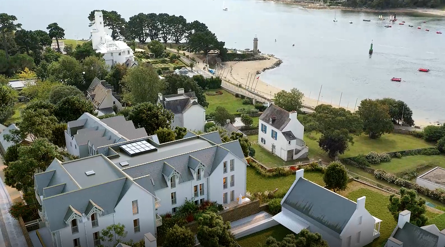 Dès l'entrée vous serez séduits par une vaste pièce de vie lumineuse (96m² environ) dans laquelle une cuisine s'ouvre sur le salon-séjour. De larges baies vitrées prolongent l'espace vers de superbes terrasses totalisant près de 87 m², exposées Sud-Ouest, offrant une vue imprenable sur l'Odet.