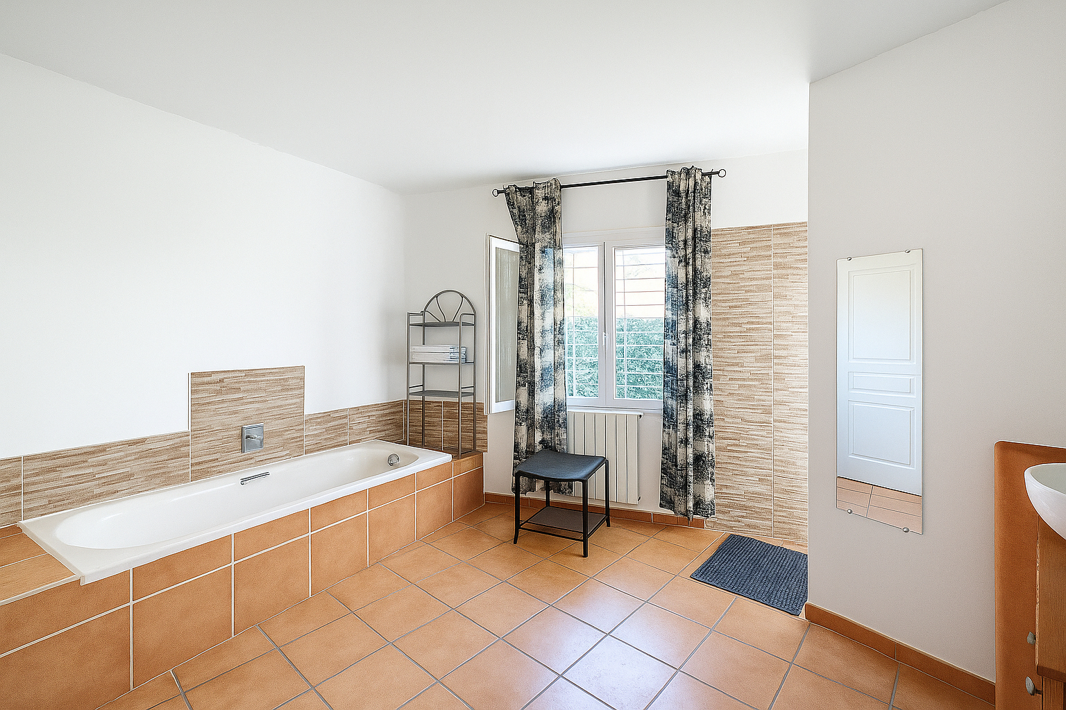 L'extérieur de la propriété est tout aussi attrayant, avec une terrasse carrelée de 60 m² offrant une vue sur le jardin. Le terrain, équipé d'un forage et d'un système d'arrosage automatique, est également piscinable.