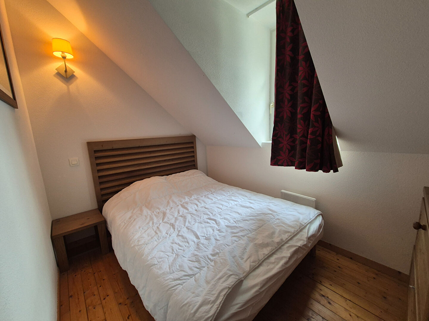 A l'étage : deux chambres, salle d'eau avec WC.