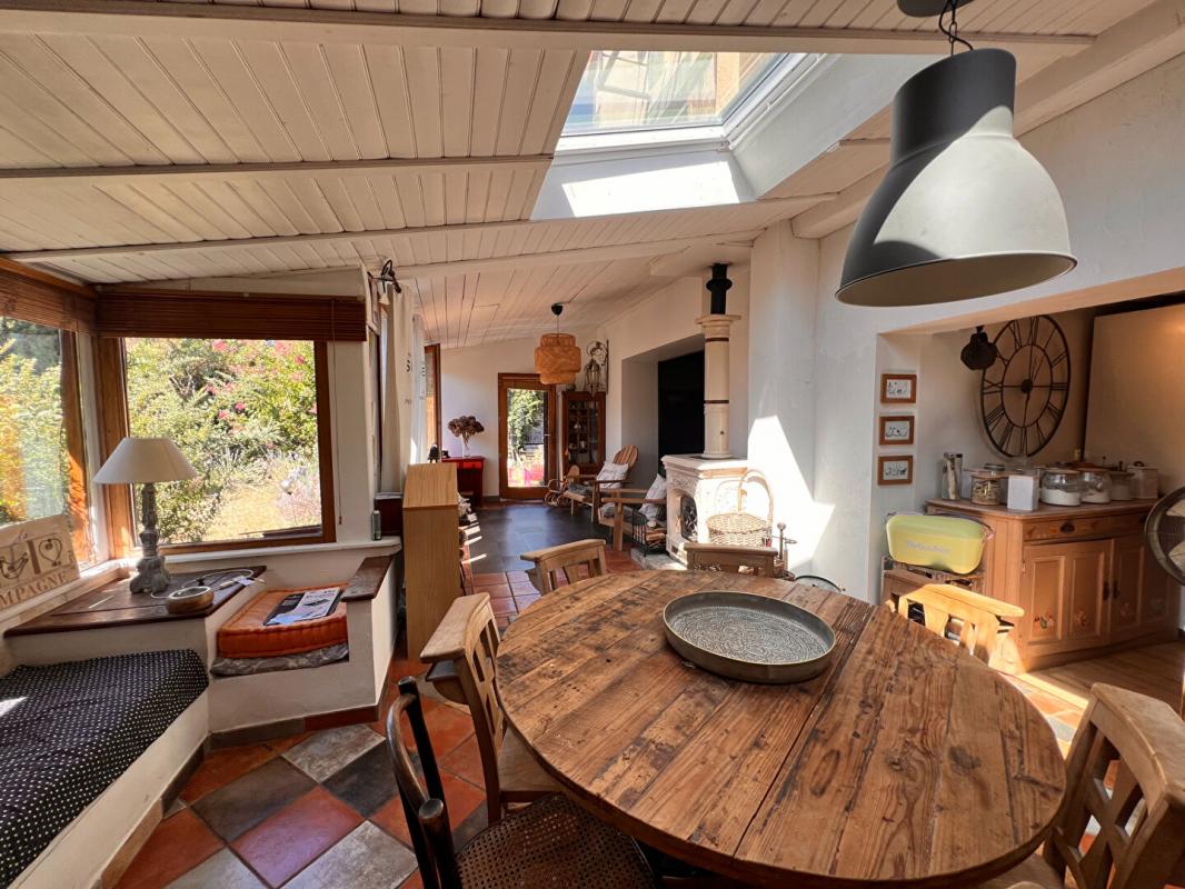 Une véranda avec son poêle à bois, vient apporter un espace supplémentaire baigné de lumière, idéal pour profiter du jardin quelle que soit la saison. Le rdc accueille également une chambre avec sa salle d'eau privative, offrant une vie de plain-pied appréciable, ainsi qu'un wc indépendant.