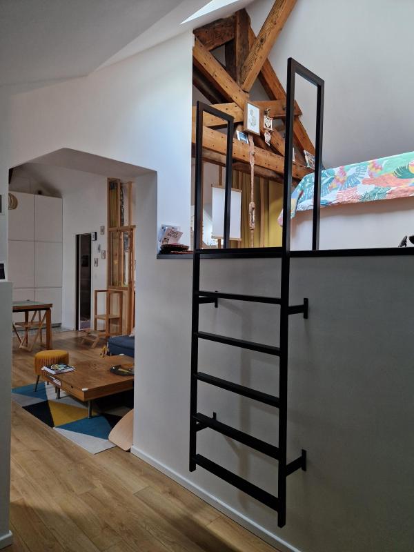 Dans une copropriété ancienne avec jardin arboré, vous serez surpris par l'originalité de notre proposition. En effet, au dernier étage d'un immeuble bourgeois du 17ème siècle, appartement de 46 m² avec des hauteurs sous plafond inhabituelles. La pièce de vie éclairée par un grand velux est composée d'un séjour, d'une cuisine équipée ouverte avec coin repas, deux chambres dont une en duplex avec dressing, salle d'eau et WC. L'ensemble a été entièrement remis à neuf et parfaitement isolé. L'ambiance est moderne et non conventionnelle.
