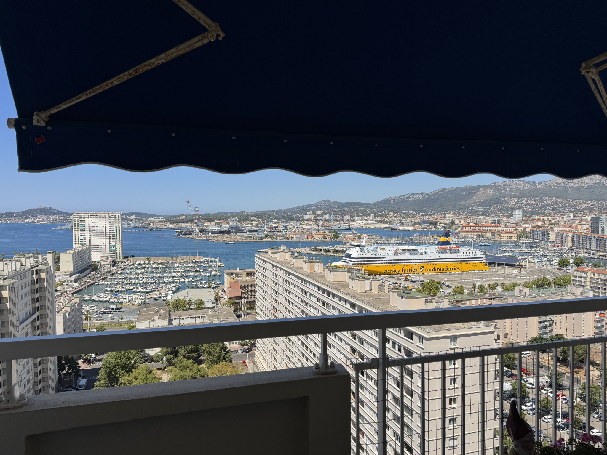 TOULON/MOURILLON - Apartment overlooking the Port of TOULON, the sea and the bay of Tamaris up to the two brothers - Luxury building - Spacious and bright apartment composed as follows: Hall with large pantry - Double living room bordered by a balcony overlooking the sea, Port and Toulon mountains - Fully renovated equipped kitchen - 2 bedrooms - Shower room redone with Italian shower / wc - Numerous cupboards - separate wc