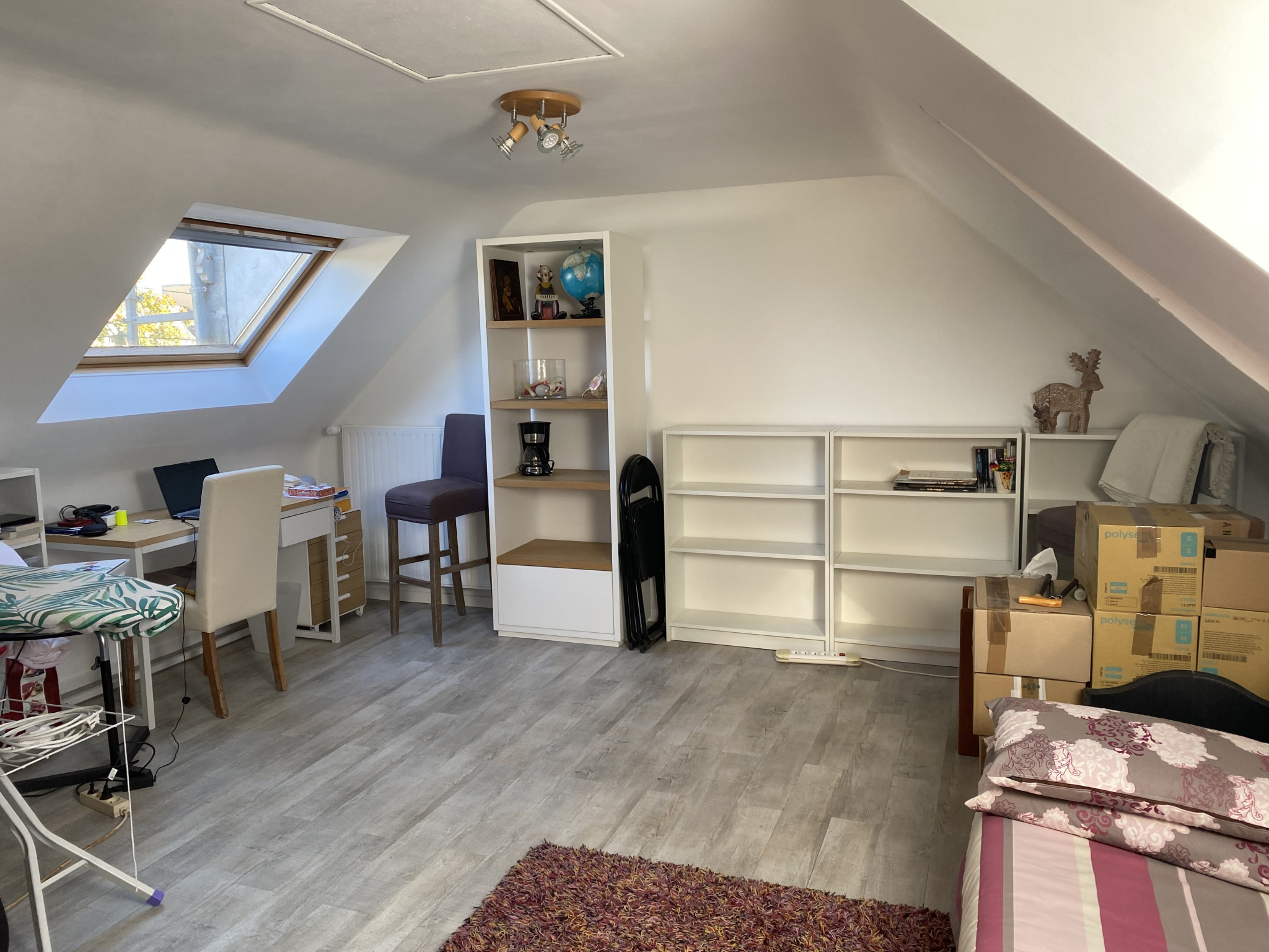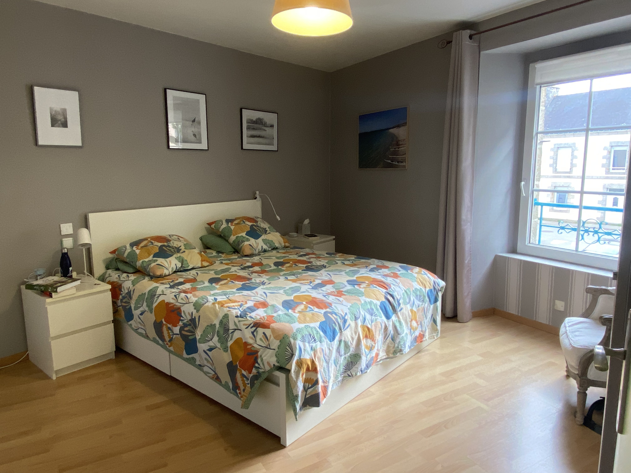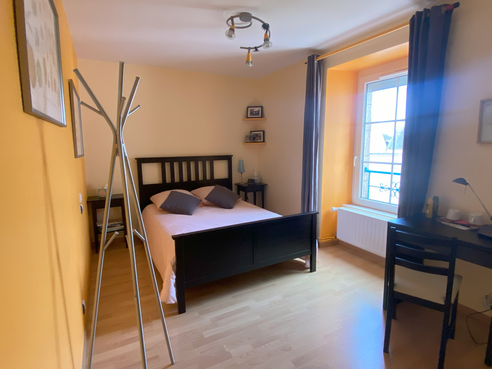 Au deuxième étage : palier donnant accès à une grande chambre, un bureau, une autre chambre, grenier.