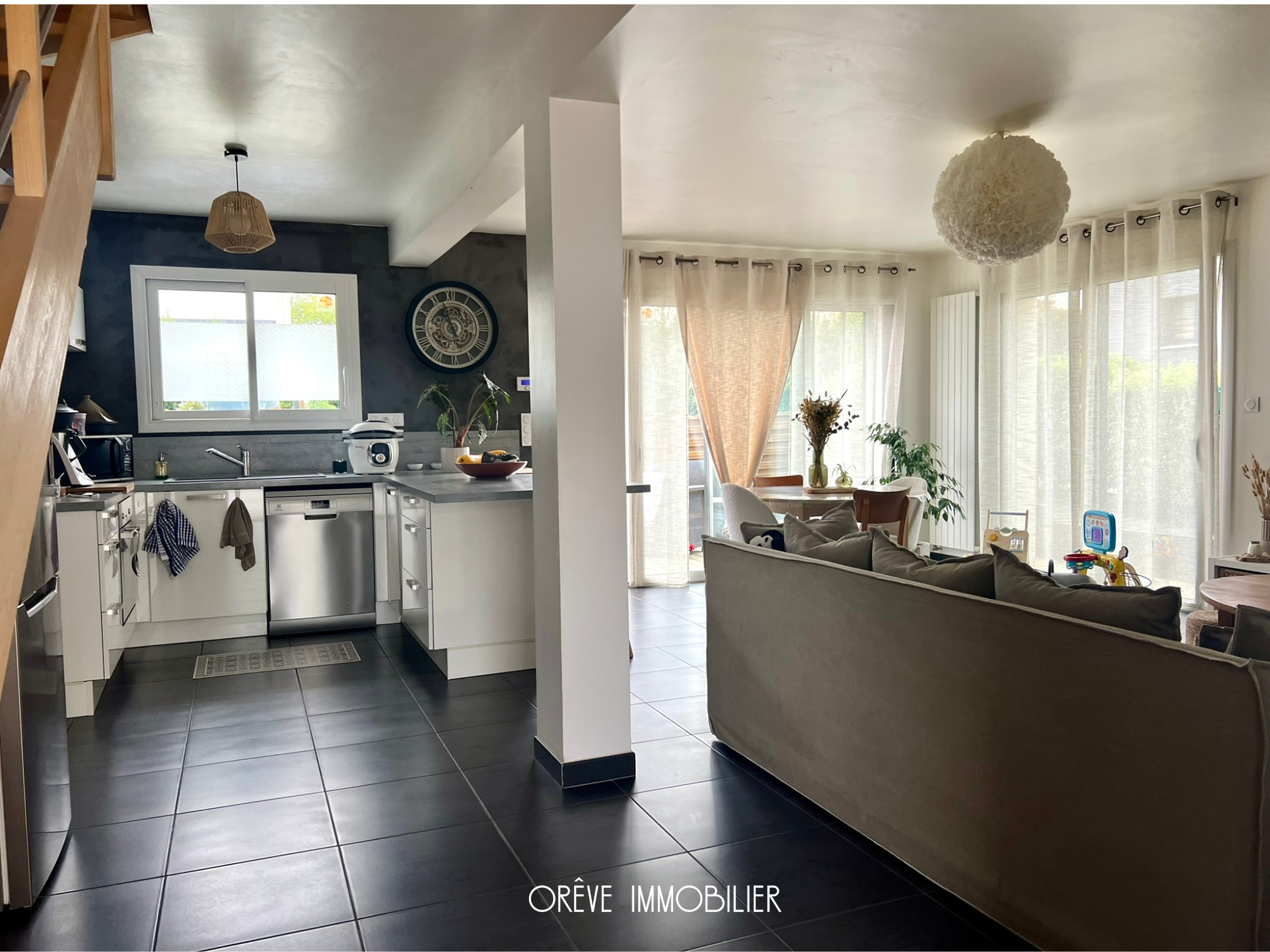 Dès l'entrée avec placard, vous découvrez une belle pièce de vie lumineuse avec cuisine ouverte, aménagée et équipée, pensée pour rassembler toute la famille. Le rez-de-chaussée offre également une chambre avec salle d'eau privative, idéale pour accueillir parents, amis ou pour une suite parentale, ainsi qu'un WC indépendant et un grand garage avec espace buanderie.