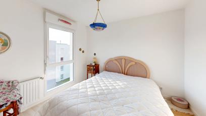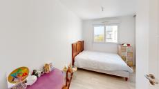 Côté nuit, l'appartement propose deux chambres dont une avec un grand placard intégré, offrant un espace de rangement optimisé.