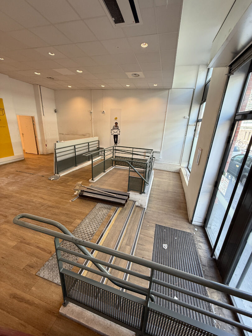 Vitrine de 8ml , rampe d'accessibilité PMR et grande hauteur sous plafond de 4m. Plusieurs accès et fenêtres pour plusieurs configurations commerciales.