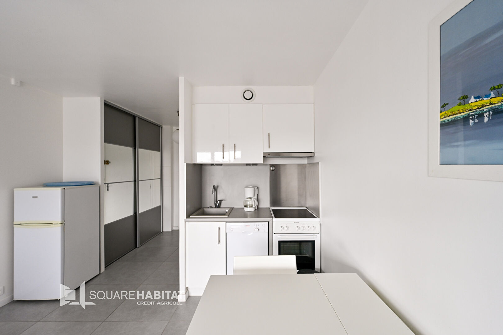 Entrée avec grand placard, agréable pièce de vie baignée de lumière avec cuisine aménagée et équipée, balcon, salle d'eau avec WC.