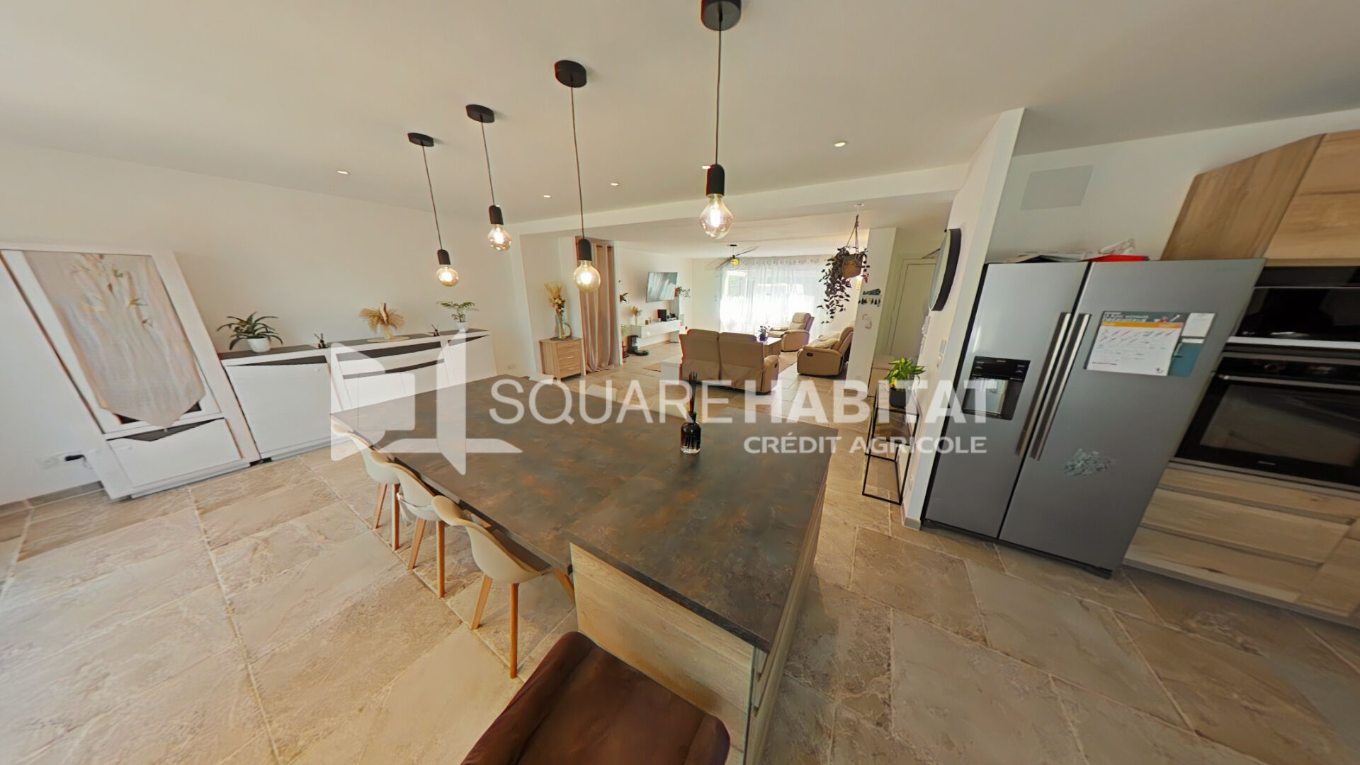 Cette maison semi-enterrée se compose : Au rez-de-chaussée : entrée avec placard et escalier, spacieuse pièce de vie de 64 m² avec cuisine aménagée et équipée, donnant sur une terrasse avec pergola, couloir desservant 3 chambres, salle de bains et WC. À l'étage : Grand palier/salle de jeux, 4 chambres, salle de bains avec douche, WC, dressing. En sous-sol (env. 160 m²) : buanderie, atelier, garages, caves, remise, etc.