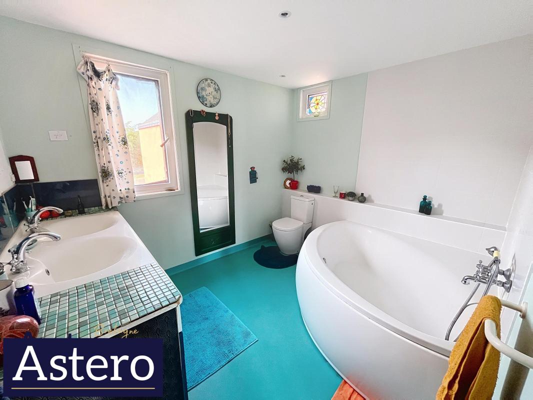 - une entrée avec WC séparé, une salle d'eau, un espace arrière cuisine, une cuisine équipée et aménagée ouverte sur un salon séjour exposé SUD avec accès à une terrasse. A l'étage, un pallier desservant une salle de bain avec WC, 3 chambres. Vous disposerez également de deux espaces en mezzanine.