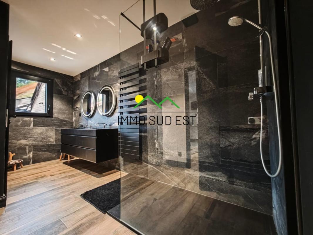 Vous apprécierez son immense pièce de vie, sublimée par de grandes baies vitrées et son toit cathédrale qui offrent une luminosité traversante et une vue imprenable sur le paysage montagnard.