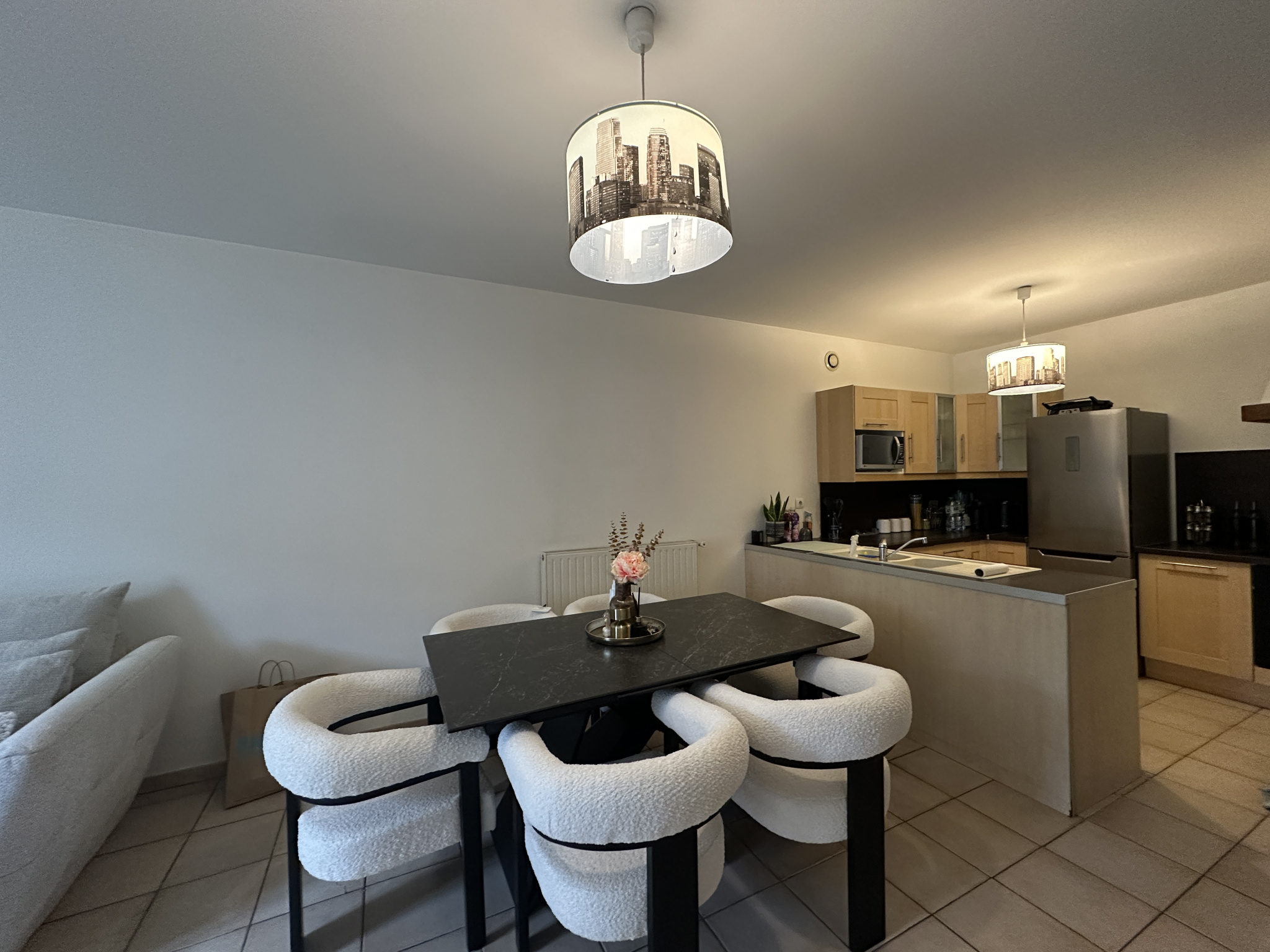 1er étage : pièce de vie et cuisine équipée ouverte.