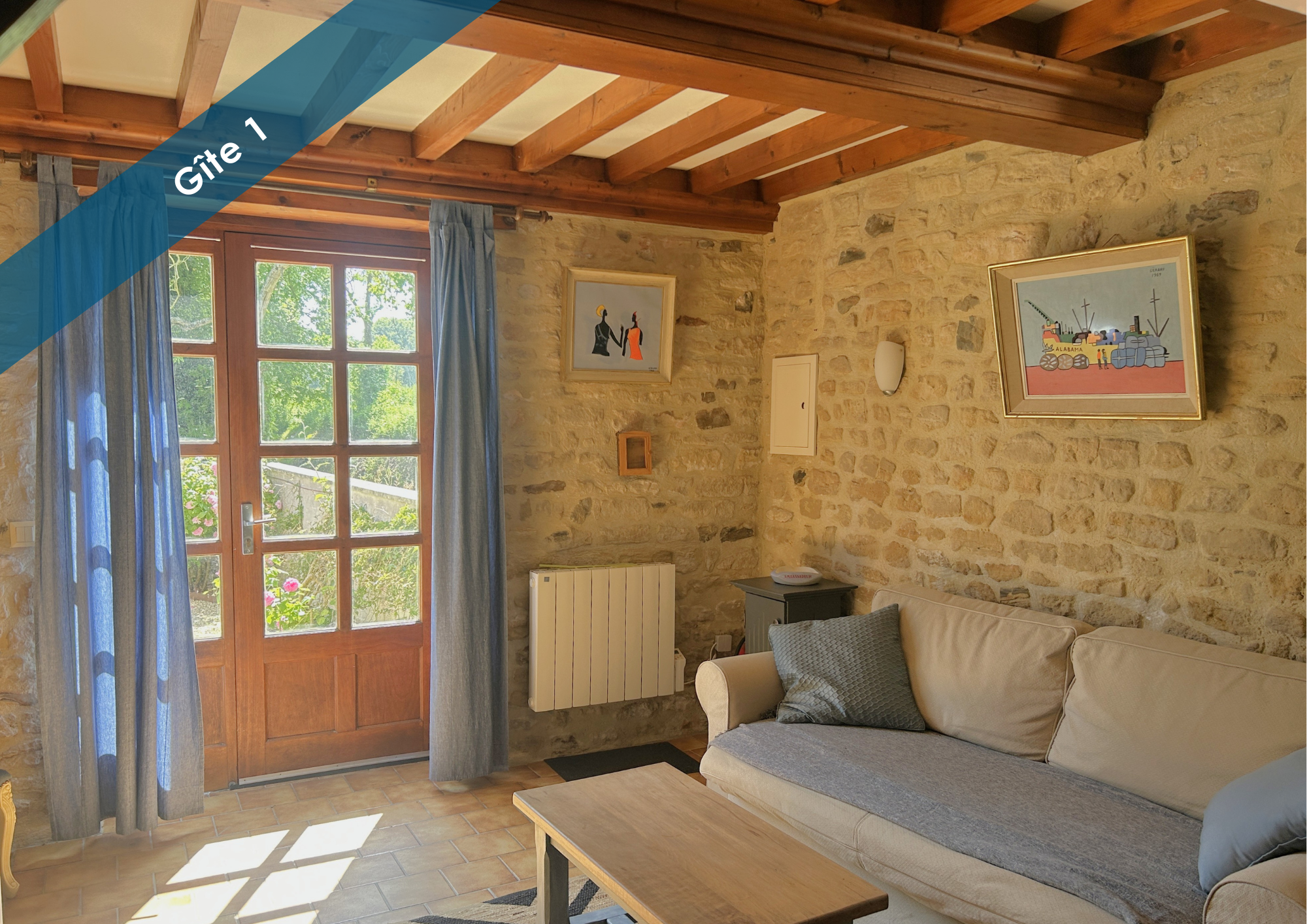 Idéalement située à quelques pas des célèbres plages du Débarquement, cette belle maison ancienne de caractère abrite trois gîtes réunis sous le même toit. Avec ses poutres apparentes, son exposition sud-ouest et son terrain arboré de 1267 m2, elle offre un cadre authentique et chaleureux, parfait pour accueillir des vacanciers en quête de calme et d'histoire.