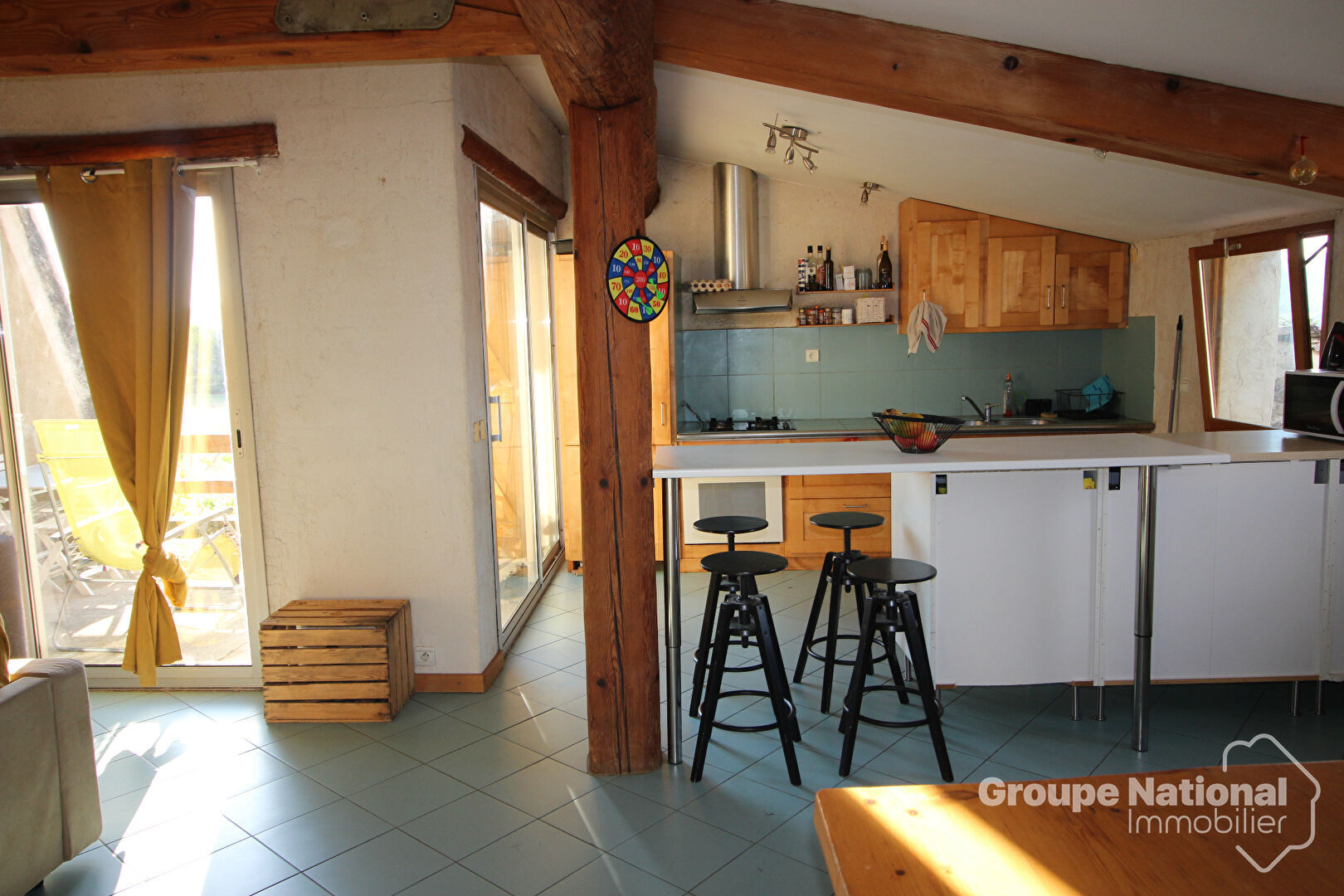 Au second niveau se trouve une cuisine ouverte sur le séjour, et une seconde terrasse.