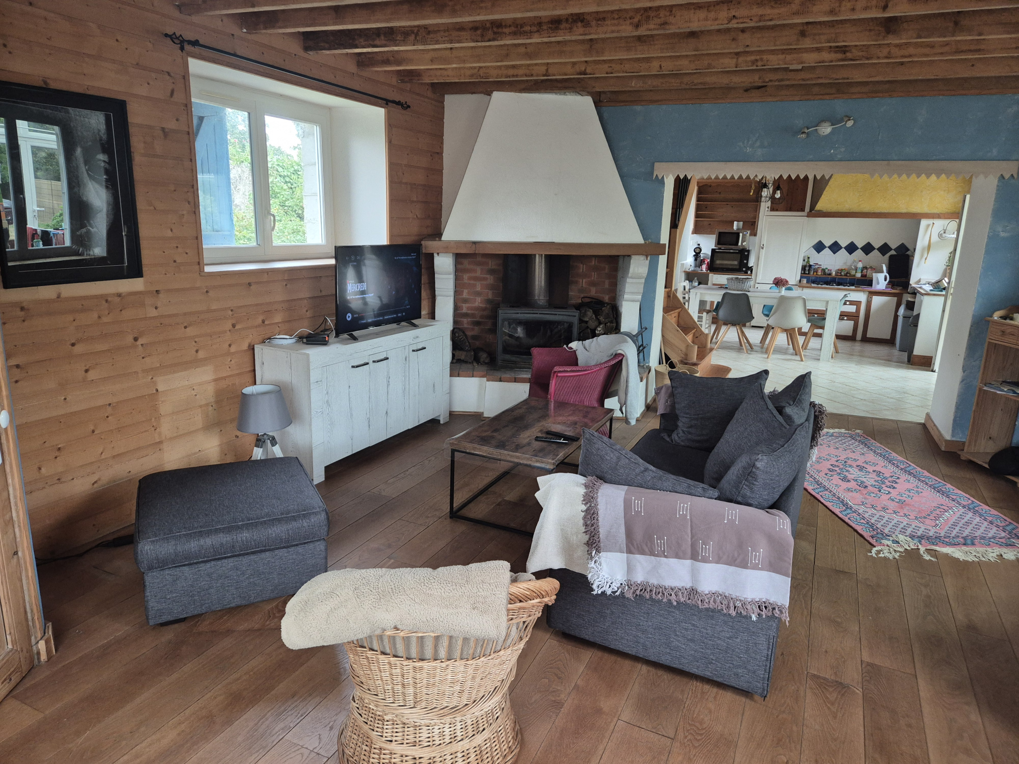 Venez découvrir cette jolie maison en pierre dans un petit hameau au calme, à 5 minutes de la mer. Depuis la véranda de 20 m2 donnant sur le jardin, on entre dans l'espace jour composé d'une grande cuisine dinatoire et un grand salon séjour avec une cheminée et insert. Le dégagement donne sur 2 chambres de rez de chaussée, salle de bain avec baignoire balnéo et une douche,et wc avec lave mains. A l'étage, un grand palier pouvant servir de chambre d'appoint ou bureau, grande chambre et wc avec lave mains. Cellier buanderie attenant. L'assainissement est de 2023 et la véranda de 2005.
