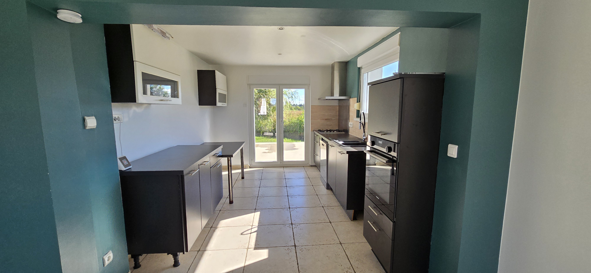 La maison comprend : au rez-de-chaussée, hall d'entrée, séjour/salon/cuisine équipée, salle d'eau avec toilettes, chambre,