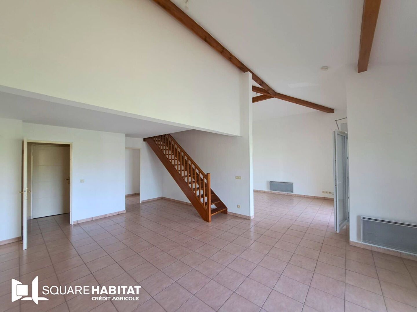 Il offre de beaux volumes, avec un vaste espace double salon/salle à manger d'une très belle hauteur sous plafond.