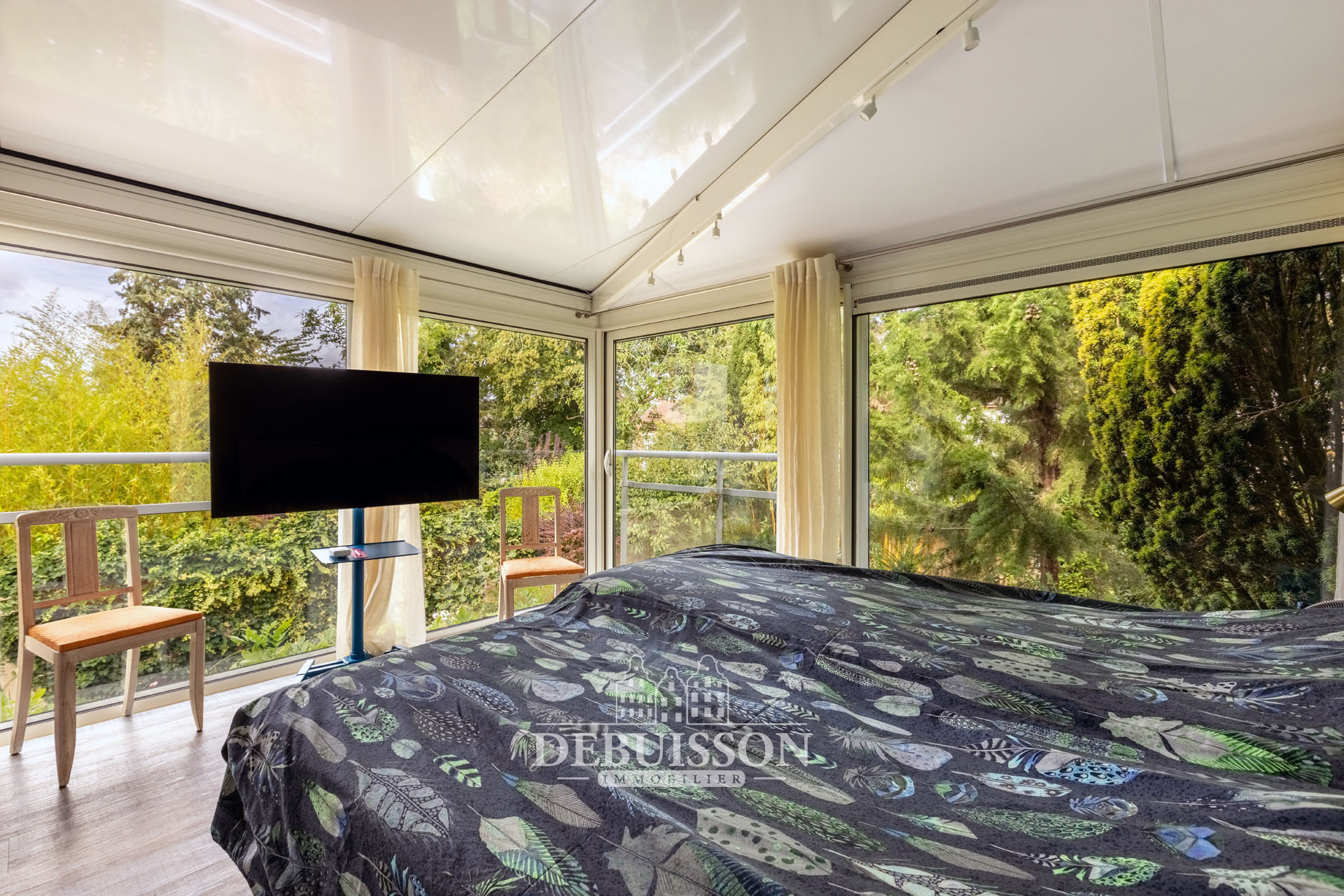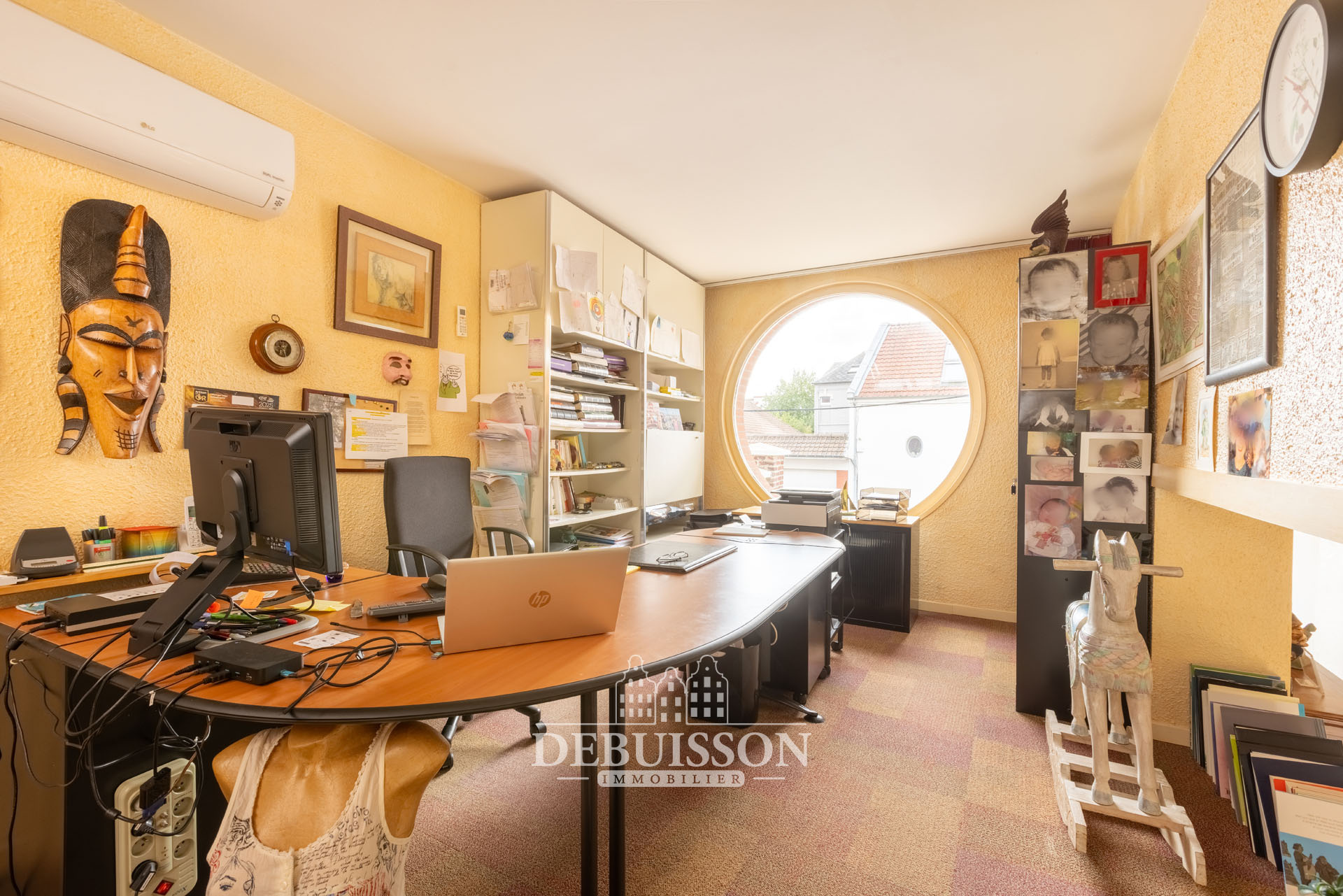entrée spacieuse, cuisine avec coin repas, séjour lumineux de près de 40 m2 et un coin bureau, 6 chambres avec un grand grenier aménageable