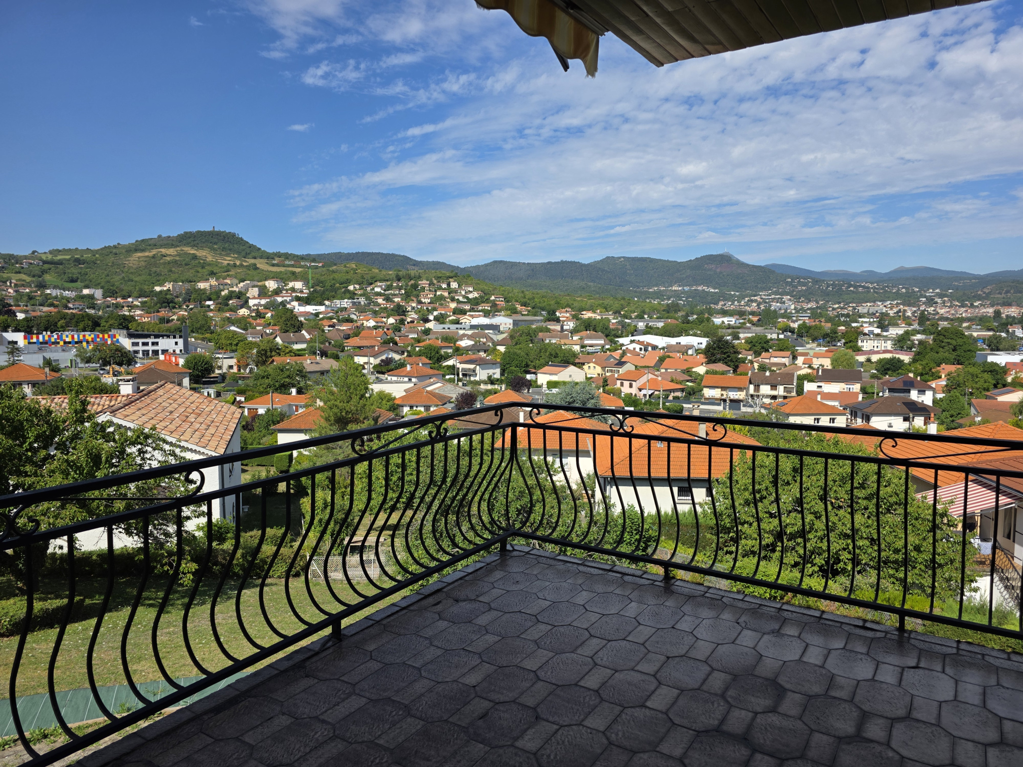 Belle et grande villa de 233 m2 sur terrain dominant de 1230 m2 composée de 4 chambres, un grand séjour avec cheminée et ouvrant sur terrasse. Grande cuisine aménagée, deux salles de bains, Garage deux voitures, plus buanderie et cave. Le 1er étage est semi-aménagé pour trois grandes chambres supplémentaires. Les fenêtres sont récentes en pvc double vitrage et il y a une pompe à chaleur récente ( air eau). Cette maison conviendra parfaitement pour une grande famille ayant envie d'espace. Le terrain est piscinable. Située à 400m de l'école et de l'arrêt de bus à 1000 m des commerces, à 1500 m de la quatre voies vers A75. Toutes nos offres sur www.altimmo63.fr