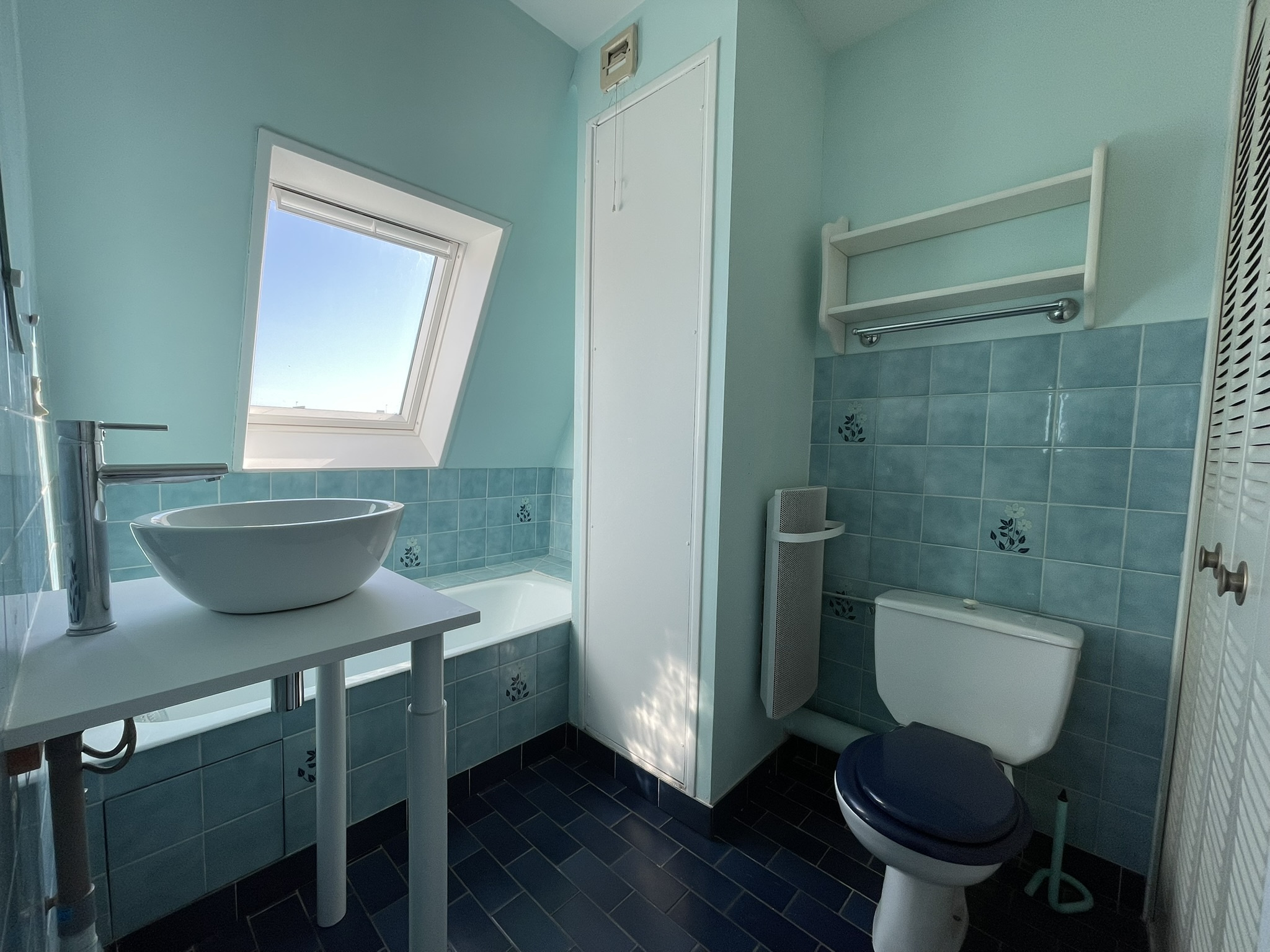 Entrée, belle pièce de vie donnant sur le balcon exposé est, espace cuisine, toilettes. A l'étage : une suite parentale avec salle de bains et toilettes. Vous pourrez profiter de la vue même de la salle de bains.