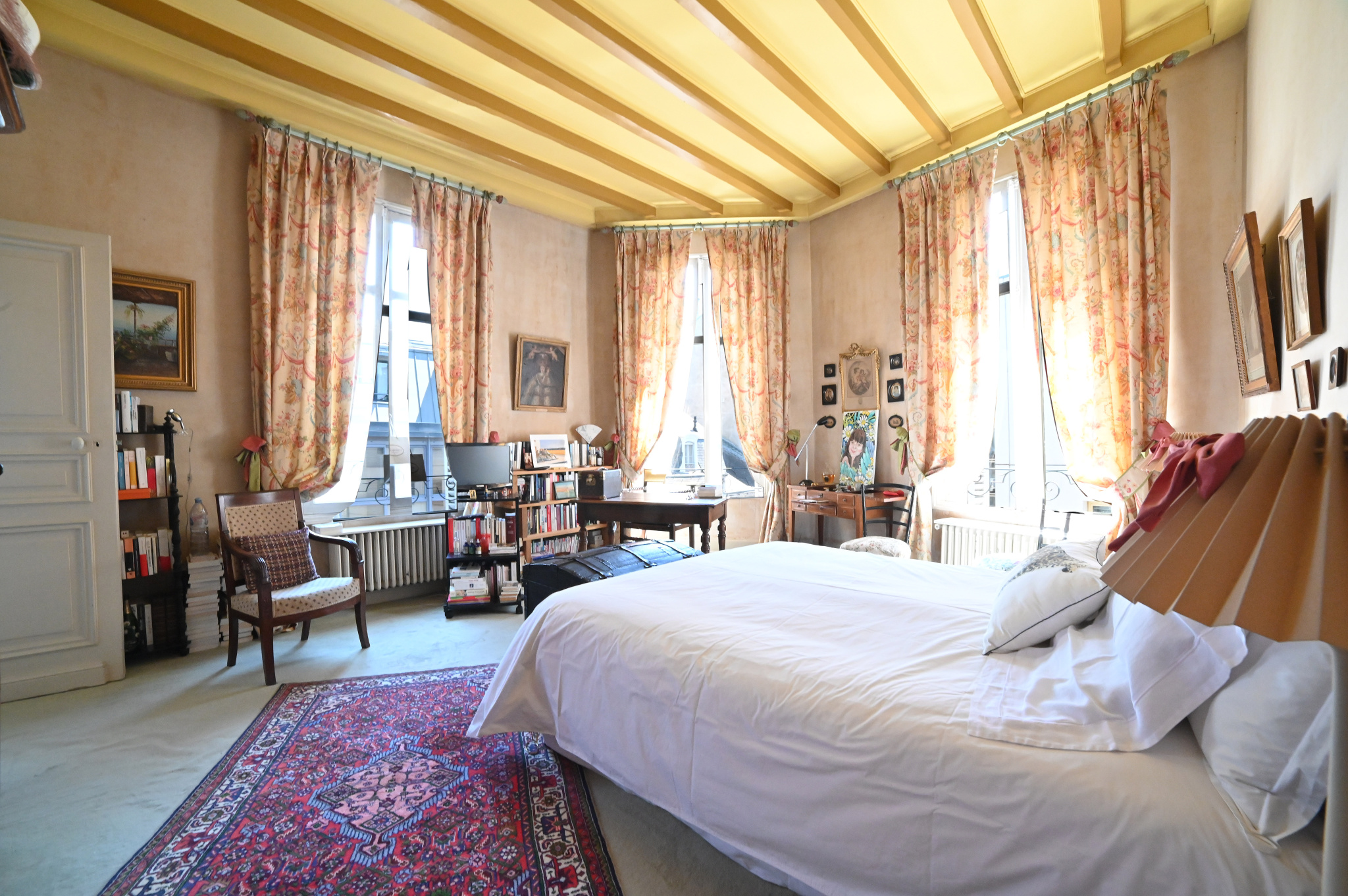 Maison de ville d'une surface de 350m2 comprenant au rez de chaussée un hall d'entrée, bureau ou petit salon, cuisine, chambre/bibliothèque et salle de bains. Au premier étage: palier desservant un séjour double de 52m2 avec de nombreux éléments de caractère (parquet, boiseries, plafond à caisson, cheminées), cuisine aménagée, une réserve, wc. Au deuxième étage: palier desservant trois chambres, chacune disposant d'une salle de bains et une pièce dressing, wc. Au troisième étage: palier desservant deux chambres, une salle d'eau et pièces exploitables selon vos envies.