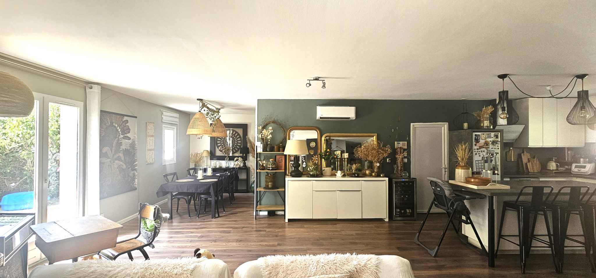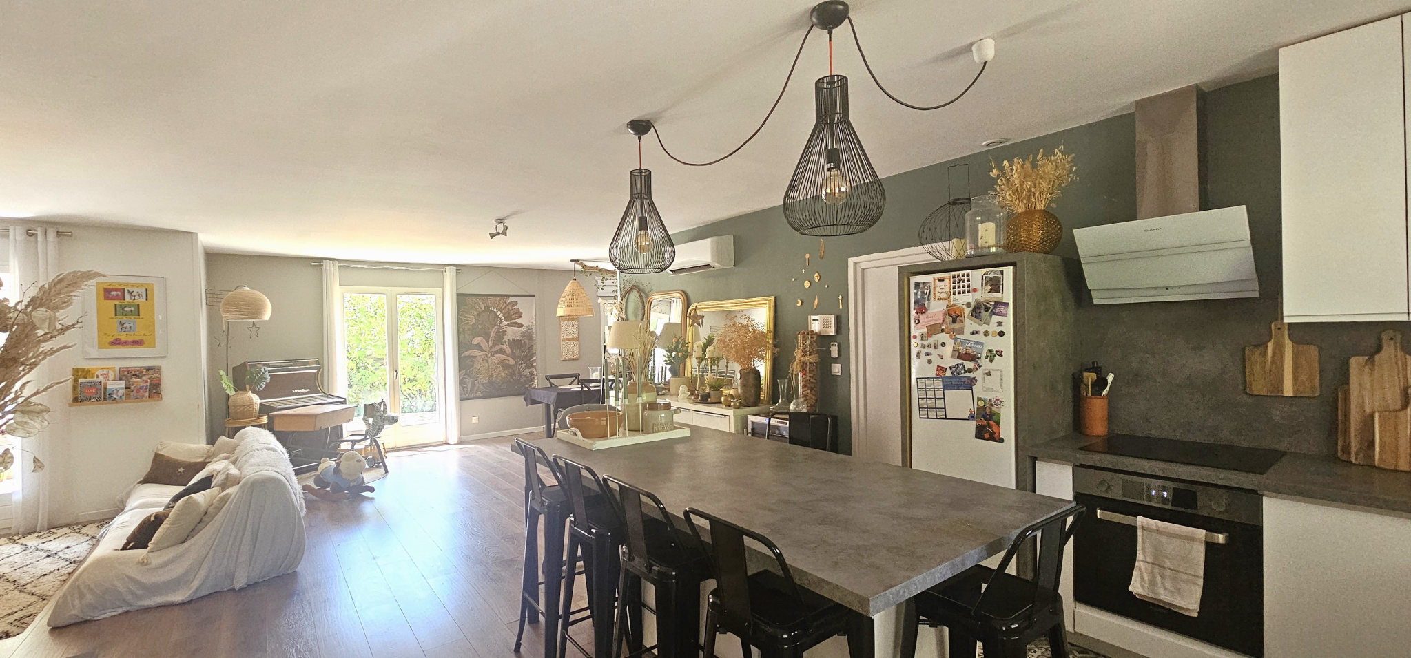 Située dans un quartier résidentiel calme à proximité du village, agréable maison de plain-pied. Vous disposerez d'une belle pièce de vie d'environ 60m2 avec cuisine équipée ouverte sur séjour/SAM et orientée sur une grande terrasse et la piscine.L'espace nuit se compose de 3 chambres, salle d'eau et WC indépendant. Un garage et un abris complètent ce bien.Vous apprécierez sa décoration à la fois tendance et chaleureuse, ainsi que ses prestations, telle que la climatisation réversible.Enfin, vous profiterez d'une parcelle de terrain de 475m2 joliment aménagée et arborée, sans vis à vis.